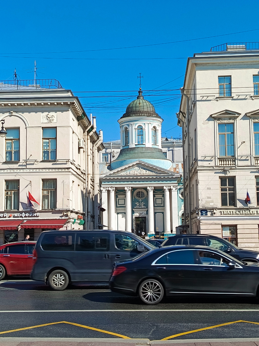 Выходим в арку (так быстрее) и попадаем на Большую Конюшенную улицу. Поворачиваем направо и идем до дома 8А. Это финская церковь.