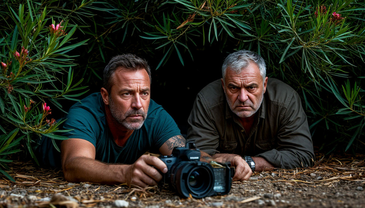Стрельцов лежал на земле под густыми зарослями олеандра, наблюдая за объектом через прибор ночного видения. Рядом, так же неподвижно, застыл Громов — коренастый мужчина с седеющими висками и цепким взглядом.