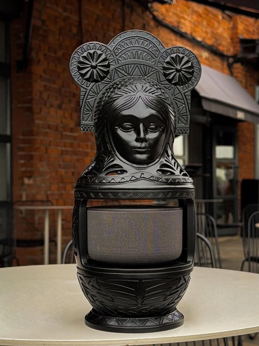 #АРТ_продукт НИКОЛАЙ АНДРИАНОВ Москва 🟰🟰🟰 Дизайнер решил закастомить колонку Алиса и из множества вариантов, наклеек, росписей и прочих декоров, выбрал изготовление арт-объекта *мы такоэ любим Теперь этот девайс не только умный, но и красивый Автор планирует расширять линейку интерьерных капсул для колонок, а пока любуемся матрёшкой 🍀 МЕРЧ ХУДОЖНИКА