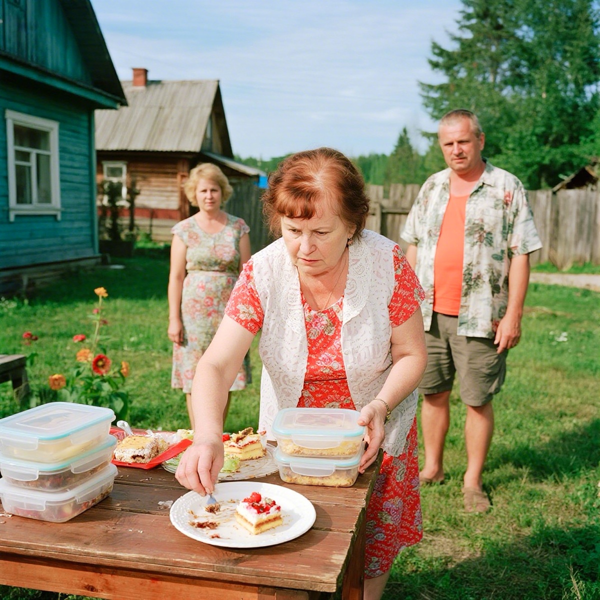 Контейнеры наполнялись с пугающей скоростью. Клавдия Николаевна работала профессионально, ловко упаковывая остатки ужина. Она даже взяла кусок торта, который принесла Лидия Петровна.