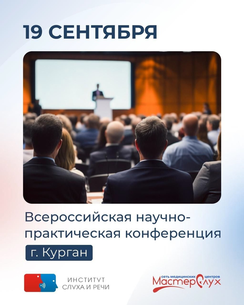 Всероссийская научно-практическая конференции «Современные подходы к междисциплинарному сопровождению пациентов с нарушениями слуха: от диагностики до реабилитации». Она пройдет 19 сентября 2025 года в Кургане. Вас ждет живое обсуждение и практические мастер-классы от тех, кто действительно «в поле»: – реабилитация детей с нарушениями слуха и речи; – инновации в слухопротезировании и имплантации; – нейрофизиологическая оценка детей с задержкой речи; – современные методы диагностики — от объективных до игровых. В рамках конференции пройдёт индивидуальный бесплатный мастер-класс от специалистов Санкт-Петербургского НИИ уха, горла, носа и речи. О том, как попасть на него — расскажем чуть позже. 🌐 Регистрация по ссылке: https://forms.gle/6r37SeHXNFbFSEZt8 Подробности https://vk.com/wall-225777251_171
