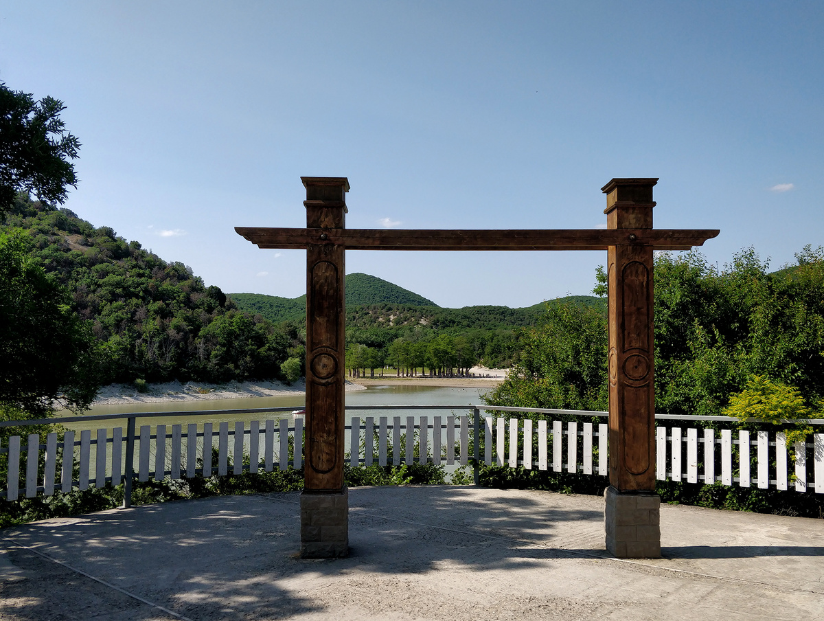 Сразу за винодельней Прохоровых начинается туристическая зона Кипарисового озера, точнее стихийные парковки перед легальным въездом в неё. Это конечно не Абрау с их размахом, но тоже весьма окультуренная территория с едальными и питейными заведениями, сувенирными лавками, подобием набережной и раскиданными по лесу беседками (платными) для отдыхающих . Имеются какие-то нехитрые развлечения типа конных прогулок, рыцарских турниров и африканской деревни. Бегают пассажирские гольф-кары, на которых ленивый турист может доехать до береговой зоны за 50р. В общем, жизнь кипит.