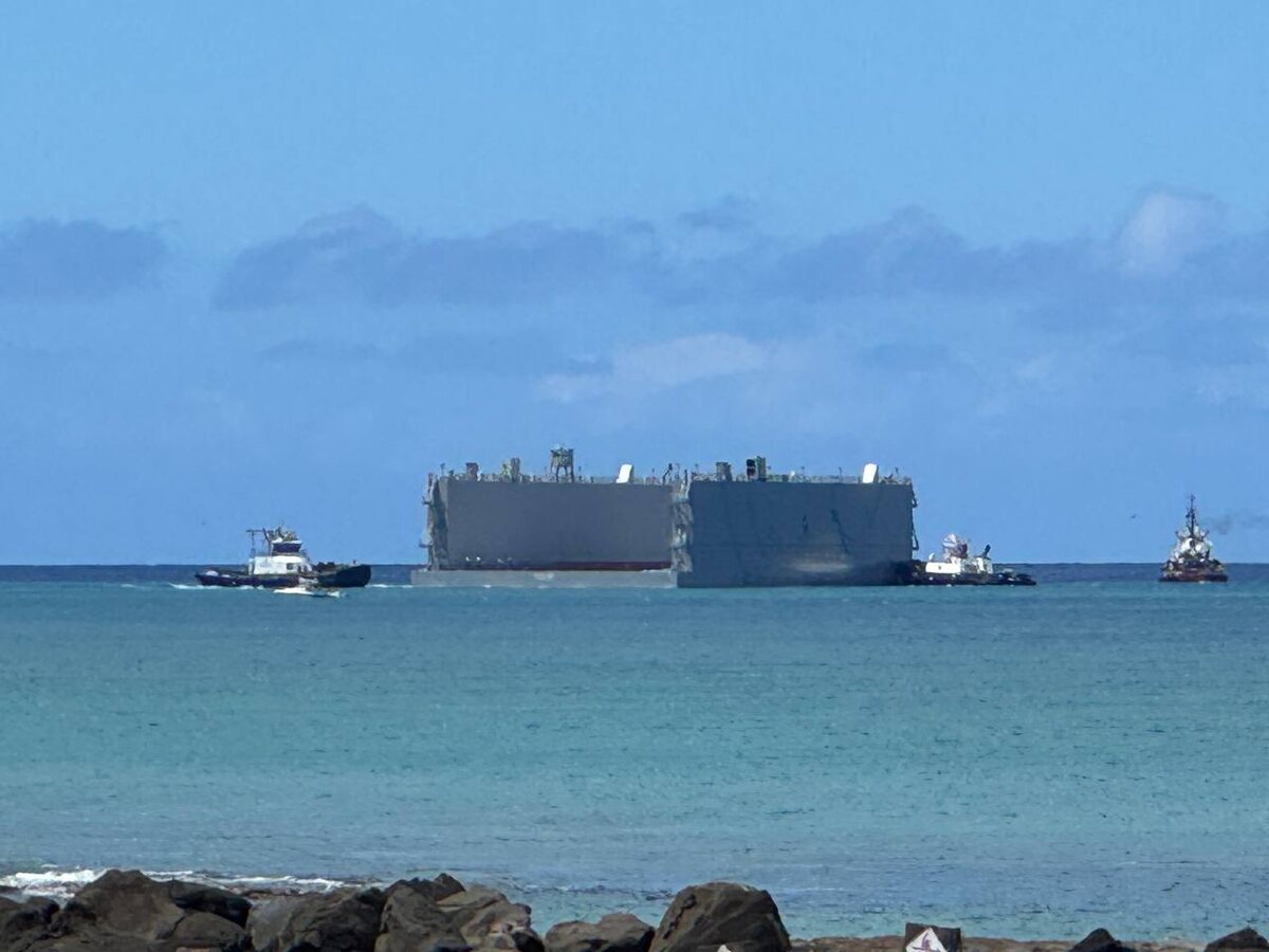 Если, что это не форт, это судно. Есть предположение, для чего оно используется?) Это FLO/FLO - float on/float off. Частично затопляемые военные транспортники для перегрузки техники и персонала с больших судов на берег. В места, нет грузовой инфраструктуры.