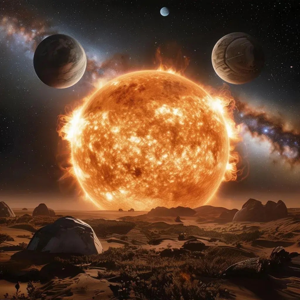 Представьте себе мир, где нет привычного солнечного света, тепла и энергии – это может стать реальностью через миллиарды лет, когда наше светило исчерпает свои ресурсы и превратится в красного гиганта, а затем окончательно погаснет или даже взорвётся. Давайте рассмотрим, как изменится жизнь на Земле при таком сценарии. ▌ 1. Исчезновение дневного света Когда Солнце перестанет излучать энергию, Земля погрузится во тьму. Света не станет вовсе, и единственным источником освещения останутся звёзды и Лунные отражения. Дни и ночи сольются в одну бесконечную ночь, которая изменит ритм жизни всех живых существ на планете. ▌ 2. Резкое падение температуры Солнце обеспечивает Землю теплом благодаря солнечному излучению. Без него температура резко упадёт до экстремально низких значений, приближаясь к абсолютному нулю (-273°C). Всё живое замёрзнет мгновенно, вода превратится в лёд, океаны замерзнут, сделав невозможным существование большинства форм жизни. ▌ 3. Гибель растений и животных Раст