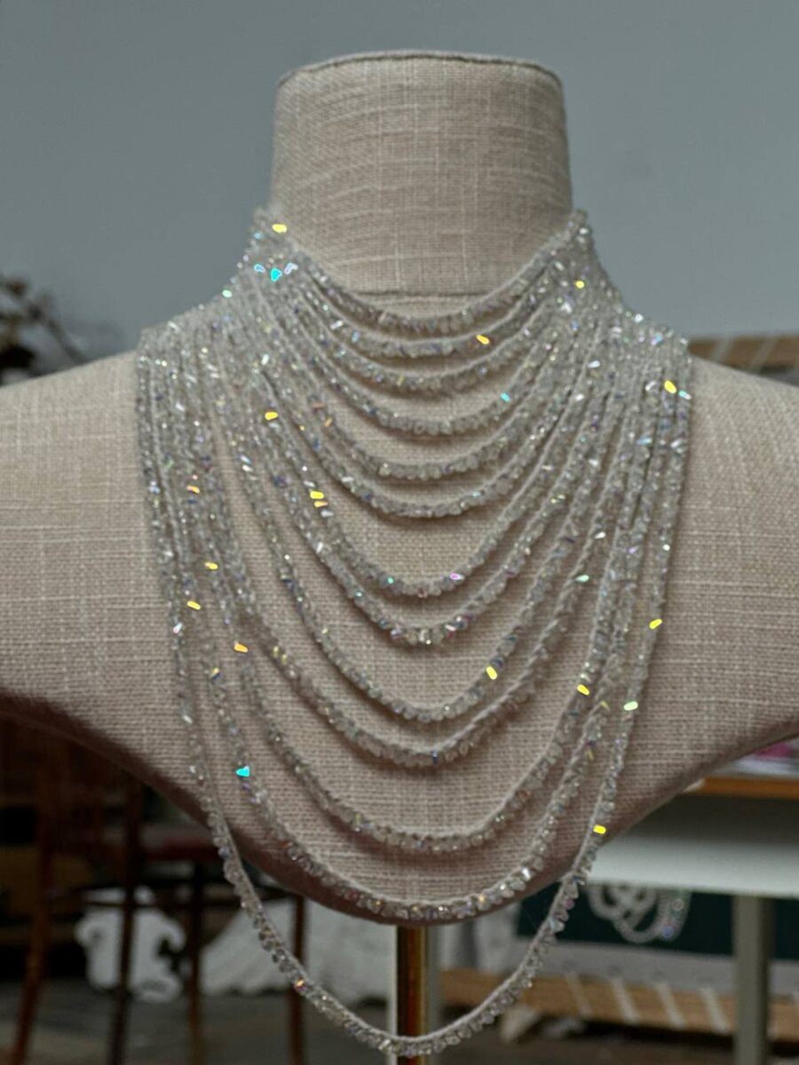 Собран новый ожерелок! Освежающие осколки льда в эти пылкие дни! Создан, чтобы дарить прохладу. Но мне кажется чего-то не хватает. Фестонов или капелек? Что добавим?) —— Кстати мы с @protraditionru уже ведём лист предзаписи на новый осенний курс по освоению искусства создания ожерелков! Запись по ссылке: https://protradition.ru/homecollection_marafon
