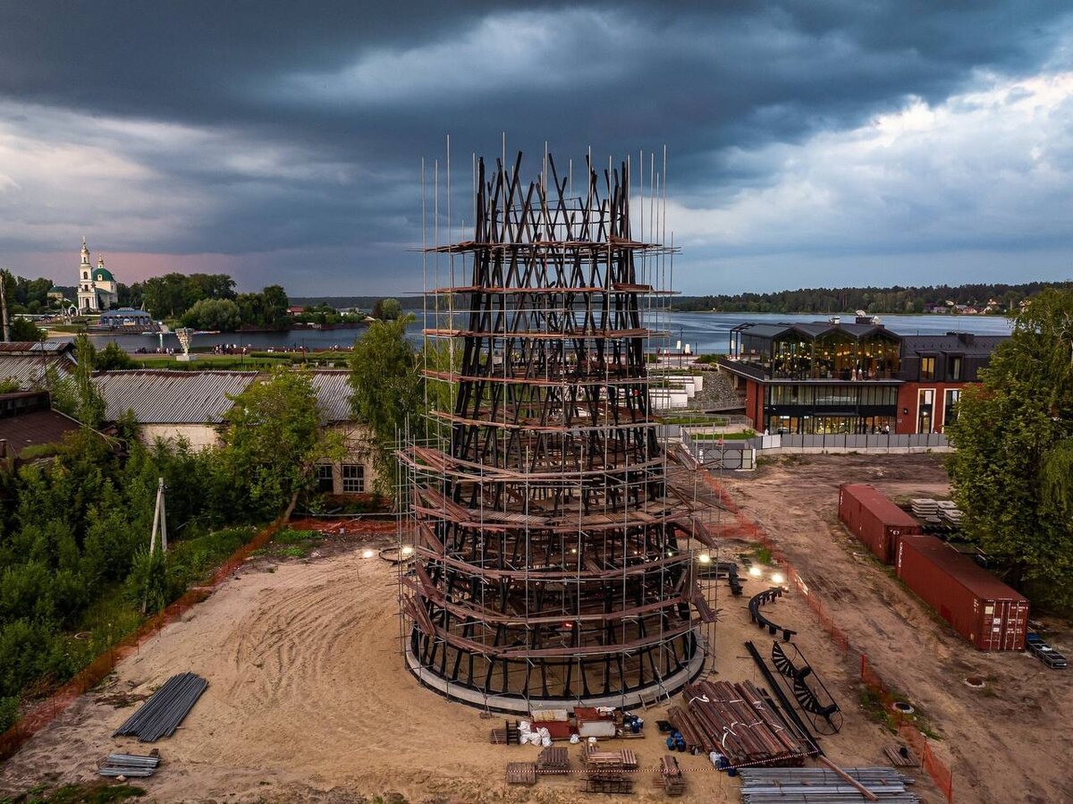 Башня переехала В Выксе собрали на новом месте, на территории будущего Шухов-Парка за плотиной пруда, большую часть водонапорной «башни Шухова». Закончить обещают к осени, но подсветку уже включали. Техническое сооружение завода обещает стать одним из главных акцентов парка. Да и уже им является.