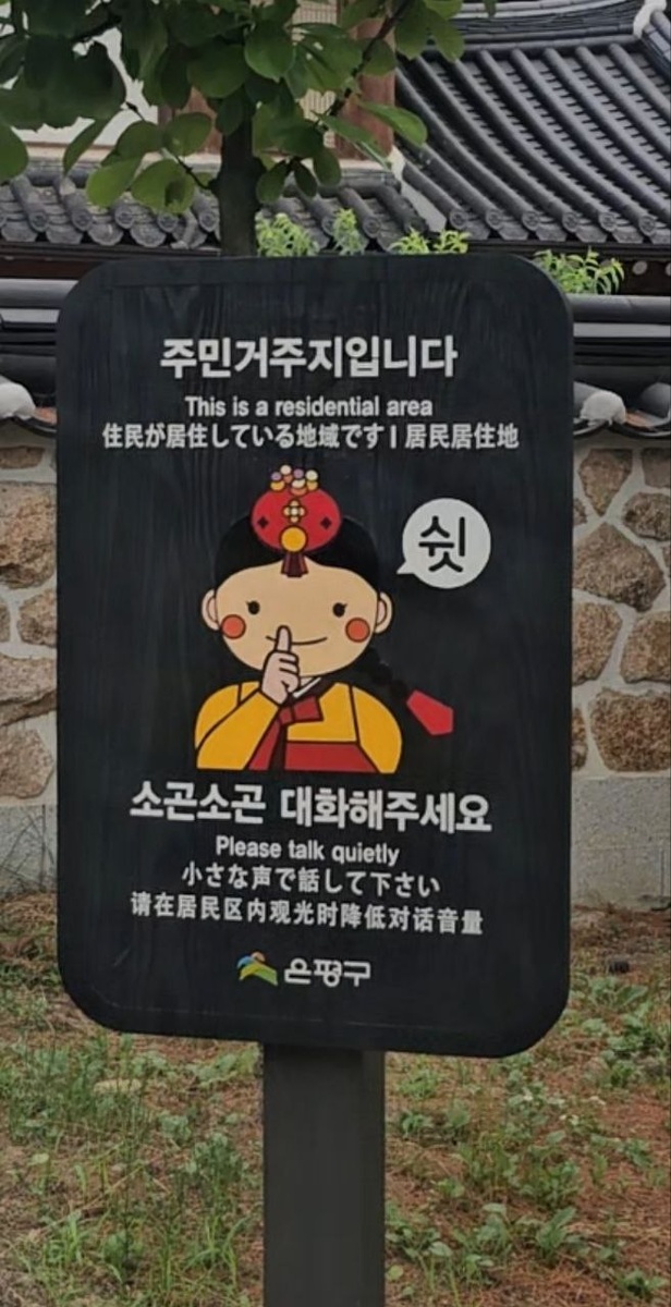 Новая табличка! Сфотографировала ее на входе в деревню традиционных домов Ынпхён (은평한옥마을) Разберем! 주민거주지 — иероглифическое слово, смысл которого складывается из составляющиз его слогов. • 주 (住) — жить, обитать • 민 (民) — народ, люди * 주민 означает «жители», «население» • 거 (居) — находиться, жить • 주 (住) — жить, обитать * 거주 — «проживание» • 지 (地) — земля, место 주민거주지 — «место проживания жителей», т.е. «жилой район» или «место жительства». 소근소근 — "шепотом", звукоподражание, описывает тихий, приглушённый шёпот или разговор. 대화하다 - разговаривать, вести диалог. Грамматическая конструкция "основа глагола + 아/어/여 주세요" - вежливая просьба. 소근소군 대화해 주세요 - разговаривайте, пожалуйста, тихо
