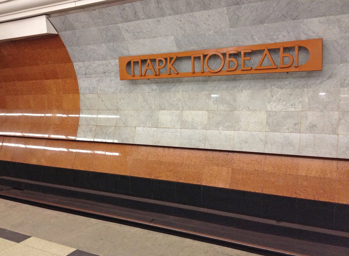 В различных источниках глубину «Парка Победы» «натягивают» аж до 90 метров. Однако официально подтвержденная глубина залегания станции на 17 метров меньше — что, впрочем, не мешает станции оставаться самой глубокой в столице. Как и «Адмиралтейская», «Парк Победы» оказалась долгостроем: работы по ее строительству стартовали еще в начале 1990 года, но через несколько лет были приостановлены. Оба зала станции начали полноценную работу в 2003 году.«Парк Победы» — станция с кросс-платформенной пересадкой. У нее есть два отдельных зала, и на платформу каждого из них прибывают поезда разных линий. Залы оформлены зеркально: в северном белые пилоны оттеняются коричневыми путевыми стенами, а в южном зале все ровно наоборот. В торцах зала расположены панно работы одиозного скульптора Церетели, посвященные войне 1812 года и Великой Отечественной войне. Правда, второе из них демонтировали в 2015 году для строительства дополнительного выхода, так что работы у художественных критиков поубавилось. Стр