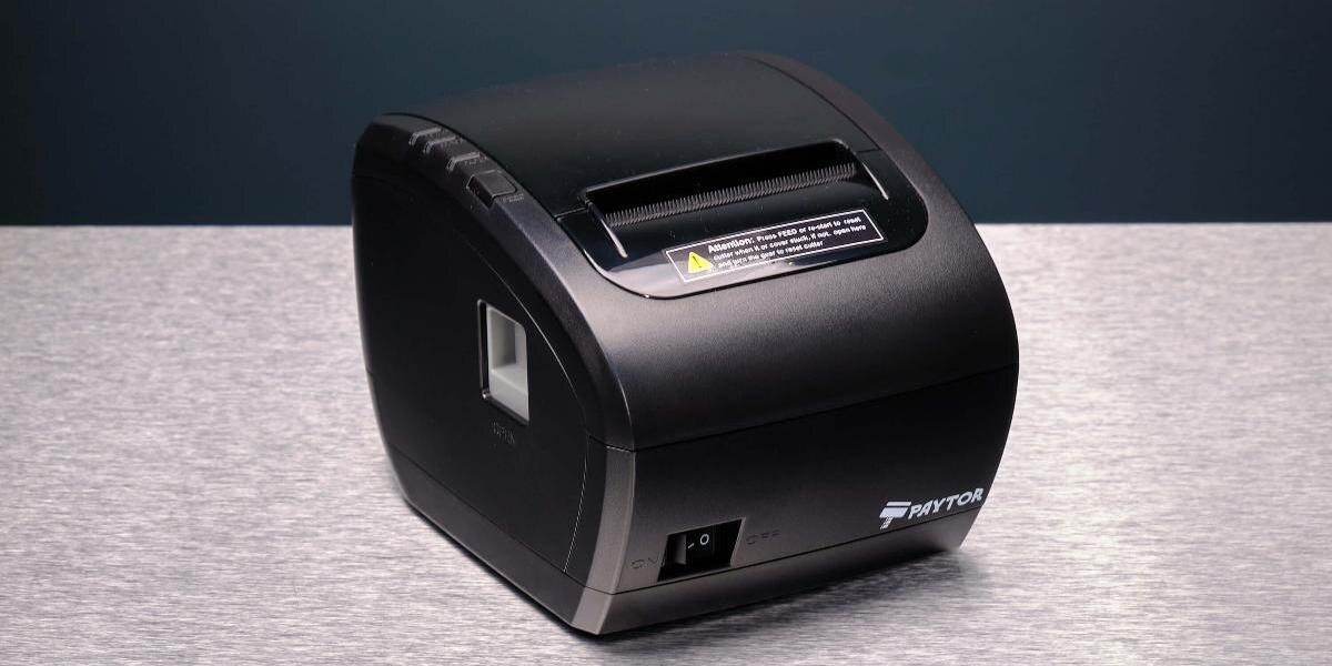 Если нужно печатать чеки на кухне ресторана, бумажные узкие документы на складе или бланки строгой отчетности в сфере услуг, то вам понадобится чековый принтер. Хорошим выбором может стать PayTor TRP8005. В обзоре посмотрим, чем интересна эта модель. По традиции первое фото общим планом. Обратите внимание, что PayTor TRP8005 не является кассовым аппаратом: внутри нет фискального накопителя, принтер не печатает фискальные чеки с данными о продаже, а устройство не нужно регистрировать в ФНС. Выдавать фискальные чеки — это задача смарт-терминала или фискального регистратора. PayTor TRP8005 подключается к компьютеру или POS-системе через разъемы Ethernet, USB или RS-232. Выбирайте тот, что свободен и более удобен в вашем случае. Кроме того, сзади есть порт для подключения денежного ящика RJ-12. Кнопка перемотки FEED и индикаторы находятся сверху. Слева на корпусе расположена кнопка открытия крышки: крупная, отличная по цвету, удобно нажимать. Кнопка включения притаилась снизу, но до нее ле