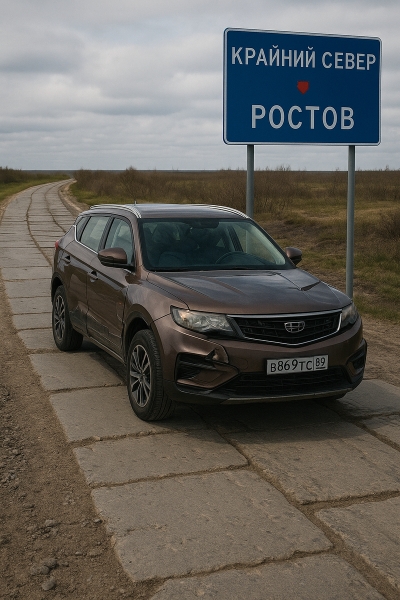 🛣️ Путешествие от Крайнего Севера до Ростова на китайском Geely и первая авария Итак, мой путь начинается с Крайнего Севера, поселка Тазовский. Это была моя первая поездка на автомобиле на такое большое расстояние — почти 5 тысяч километров. Путь оказался тяжелым, полным впечатлений и неожиданностей. После переправы (которую я описал в другой статье), я направился в Ростов. Первый город — Корочаево. Здесь хоть как-то был асфальт. Но потом… он исчез. Начались бетонные плиты длиной около 200 км. Это было ужасно: плиты все в разбежку, колёса било постоянно, разогнаться невозможно — только тормозить. Я проехал этот участок «изнурительной дороги» и, наконец, всё стало спокойнее: заправки, кофе, трасса… Я доехал до Сургута — примерно 1200 км от Тазовского — и понял: больше не могу. Глаза слипаются, реакций нет, усталость страшная. Остановился на заправке, откинул кресло и подремал пару часиков. Следующая точка — Челябинск. Но по какой-то причине навигатор отказался работать, и я заехал