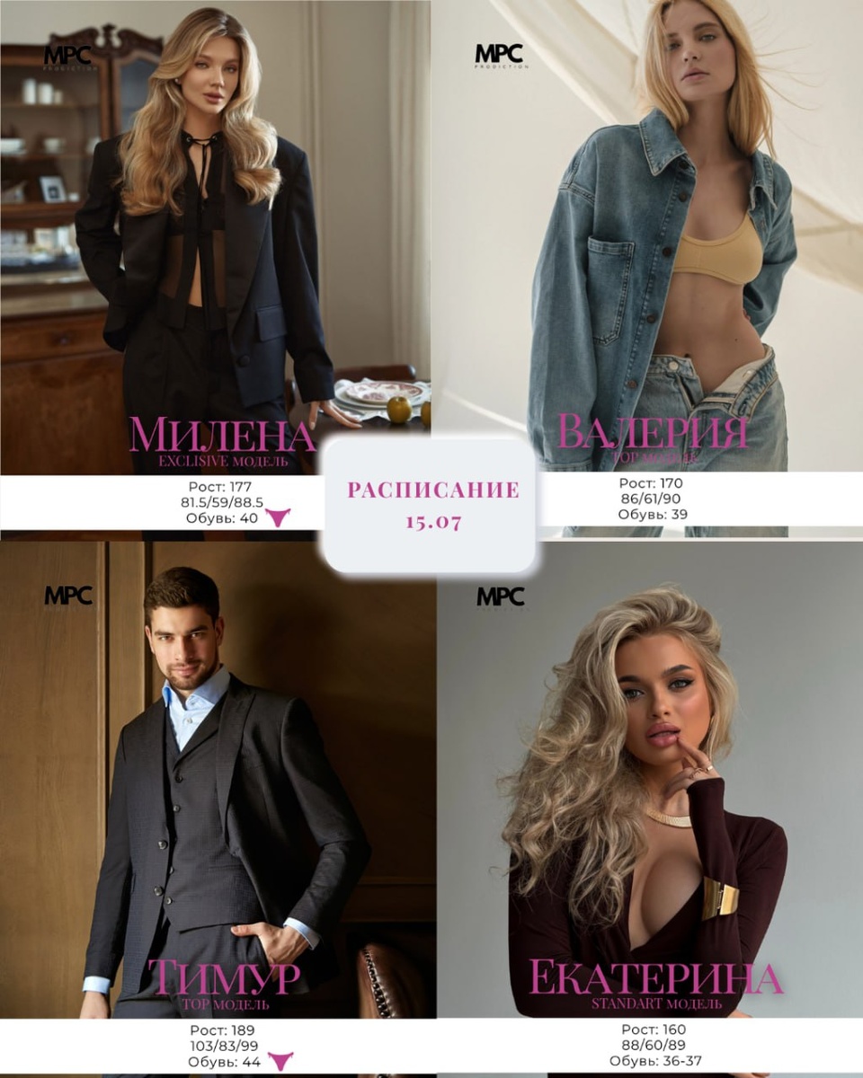 MPC_studio |15 июля ⚡️Успейте записаться на съёмку с новыми эксклюзивными моделями : Тимур, Милена, Валерия, Екатерина и Анна. #Москва ▫️1 артикул от 2 900 р (15 фото) ▫️CTR-boost-5 + 3 500 р (заглавные карточки товара) ▫️Тариф MPC_studio🔝 8000 р (доверься нашей команде!) Мы создаем продающие фото для брендов и маркетплейсов☄️ Портфолио и отзывы: https://t.me/mpcontent_result Для записи на съемку пишите нашему менеджеру: https://t.me/mpcont_help