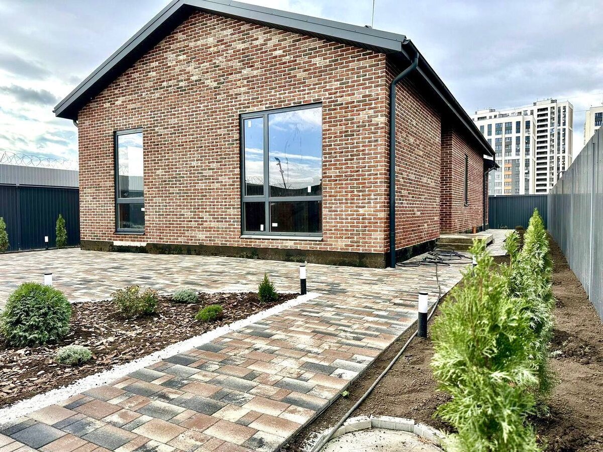 ◾️Дом возведен в современном архитектурном стиле барнхаус на ленточном фундаменте, полностью из кирпича, внутренние стены — кирпич «Паромакс», наружные — кирпич ручной формовки, большие металлопластиковые окна с алюминиевым профилем, энepгосбeрeгaющиe стеклопакеты, кровля — черепица «Грин Лaйн», морозостойкие двери «Эстет» с термомостиком. высокие потолки 3,5м, монолитное перекрытие.