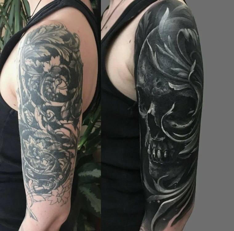 ✅ Когда перекрытие — хорошая идея: ✔️ Небольшая и блеклая татуировка Прошло 5–10 лет, пигмент сильно выцвел, контур «уплыл». Такую работу можно покрыть практически любым новым дизайном — особенно в тёмных или плотных стилях. ✔️ Плохо выполненная работа Если техника подкачала, линии кривые, цвет неравномерный — перекрытие сделает визуально аккуратнее, выровняет силуэт, уберёт хаос. ✔️ Если ты хочешь не «стереть память», а перезаписать смысл Иногда перекрытие — не про стыд, а про трансформацию. Это тоже работает. ⚠️ Когда лучше не перекрывать: ✘ Татуировка с плотным чёрным пятном или чётким контуром Если старая работа насыщенная, с жирным лайном и тенью — новое изображение будет ограничено по стилю и размеру. Вариантов становится мало, и почти всегда — только тёмные. ✘ Если клиент хочет «что-то светлое и воздушное» поверх старого трэша Тут увы — магии нет. Белый не перекрывает чёрный. И «тонкие линии на фоне старого шрифта» тоже не работают. ✘ Когда ожидания не совпадают с реальнос