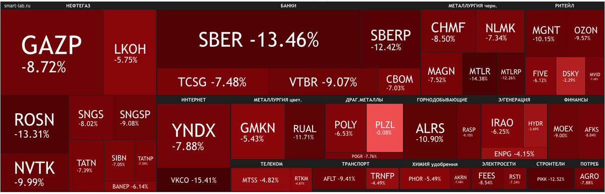 ➡️Это означает, что вслед за грозными намеками могут последовать гораздо более мягкие заявления и оговорки. Учитывая, что, как мы говорили, основной негатив уже в цене, то ближе ко второй половине дня или к вечеру на рынке вполне может последовать отскок. В этом случае в лидерах будут «голубые фишки», тот же «Сбер».