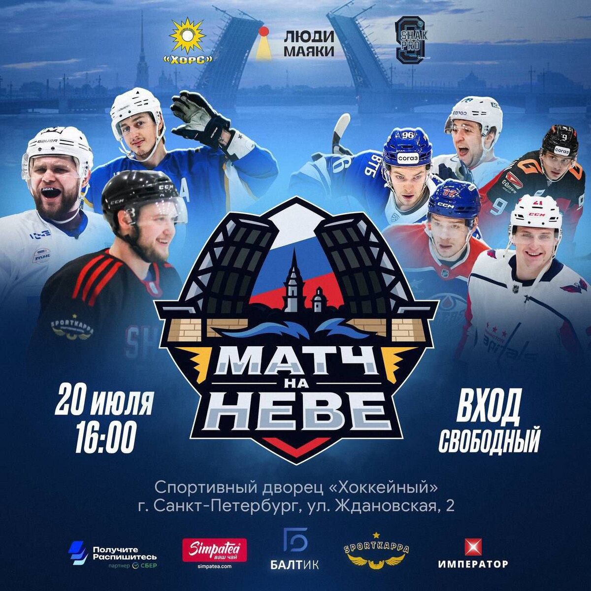 Звезды и легенды хоккея объединятся для общей, благой цели! 20 июля в Санкт-Петербург пройдет благотворительное событие «Матч на Неве», в котором примут участие известные хоккеисты из НХЛ и КХЛ для помощи детям с редкими заболеваниями. Игра организована при поддержке Фонда «Люди Маяки». Также в «звездный состав» войдет президент Федерации хоккея Ленинградской области — Валерий Покровский, который представит 47 регион на благотворительном матче. Сборная игроков НХЛ/КХЛ будет представлена тремя «пятерками». Состав звезд: Афанасьев Валерий - тренер Сафронов Кирилл - тренер 1 Пятерка 1. Плотников Сергей 2. Прохоркин Николай 3. Рашевский Дмитрий 4. Михаил Пашнин 5. Валерий Покровский 2 пятерка 1. Подколзин Василий 2. Петьков Кирилл 3. Андрей Алтыбармакян 4. Александр Алексеев 5. Александр Никишин 3 пятерка 1. Мальцев Михаил 2. Кручинин Алексей 3.Егор Сучков. 4.Денис Александров 5. Георгий Солянников «Звездному» составу предст