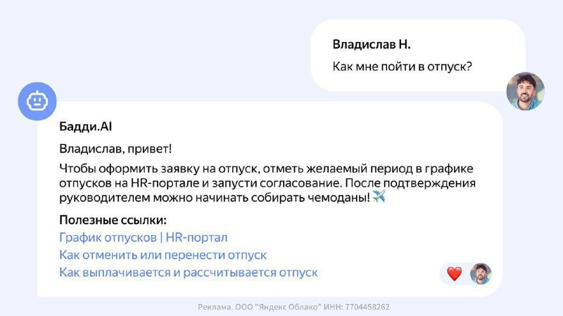 🔥 Новый ИИ-ассистент для бизнеса — универсальный помощник, который легко встраивается в процессы компаний любого масштаба! Эта нейросеть готова взять на себя всю рутину 🧹: — отвечает на вопросы клиентов и сотрудников, — обрабатывает документы и скриншоты, — понимает контекст диалогов, — работает с массивами данных и большими базами знаний. Ассистент идеально подходит для HR, службы поддержки, юристов и IT-команд. Он всегда на связи, без выходных и отпусков, помогает автоматизировать задачи и прокачивать продуктивность команды 🚀. Хотите освободить время для важных дел? Подключить ассистента можно "здесь". #нейросети #ИИдлябизнеса #искусственныйинтеллект #автоматизация #производительность #AI #цифровыеинструменты https://tsss.me/eMvPZ7JV