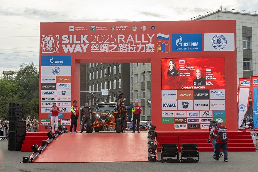 12 июля в Иркутске спортсмены проехали зрелищный и яркий пролог – позади первые 8 километров марафона. А уже вечером в 18:30 на площади Графа Сперанского в торжественной обстановке участники проехали стартовую арку, и 15-е издание ралли было официально открыто. Уже в 9 утра на Ангаре, на территории Чертугеевского полуострова в Октябрьском районе Иркутска, спортсменов ждали первые 8 километров по кроссовой трассе. Первый ССУ был коротким, но оказался достаточно скоростным и был лихо закручен. Так как гонка длинная и основные гоночные километры впереди, надо беречь машину и вкатываться потихоньку. По результатам пролога в лидерах экипаж команды «КАМАЗ-мастер» под управлением Богдана Каримова, которому ассистировали Дмитрий Никитин и Айдар Бигашев. За лучший прыжок и лучшее время (0:05:43,6) «камазовцы» получили два специальных приза – два Кубка Белого тигра, символа Международного ралли «Шёлковый путь», изготовленных из местного минерала офикальцита. Эта порода использовалась ещё древним