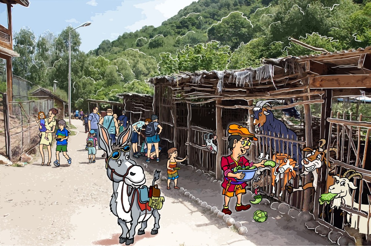 Что с него взять, с придуманного персонажа родом из далекой Сибири, где в тайге только шишки кедровые, а вместо яблони мелкая дичка да ранетка, размером с ноготок, потому как крупнее она просто не успевает вырасти за короткое, но жаркое лето. Многое, многое он видел впервые. И это ничего, что здесь бань общественных почти нет, главное, воды много и в других ипостасях. Многочисленные минеральные оздоровительные воды вполне его устраивали, и он начал подумывать, глядя на холку и шевелящиеся уши своего транспортного средства передвижения: «У, может, рвануть вон туда? На Эльбрус!»