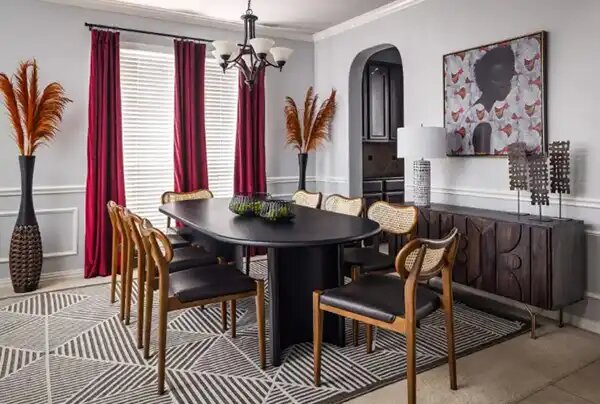 КАК ЭТО СДЕЛАТЬ: Конечно, вам понадобится открытая планировка, чтобы принять эту тенденцию, но расширение дверных проемов также может работать на увеличение потока между пространствами. Затем используйте ковры или стратегическое размещение мебели, чтобы обозначить обеденную зону в пространстве с открытой концепцией.