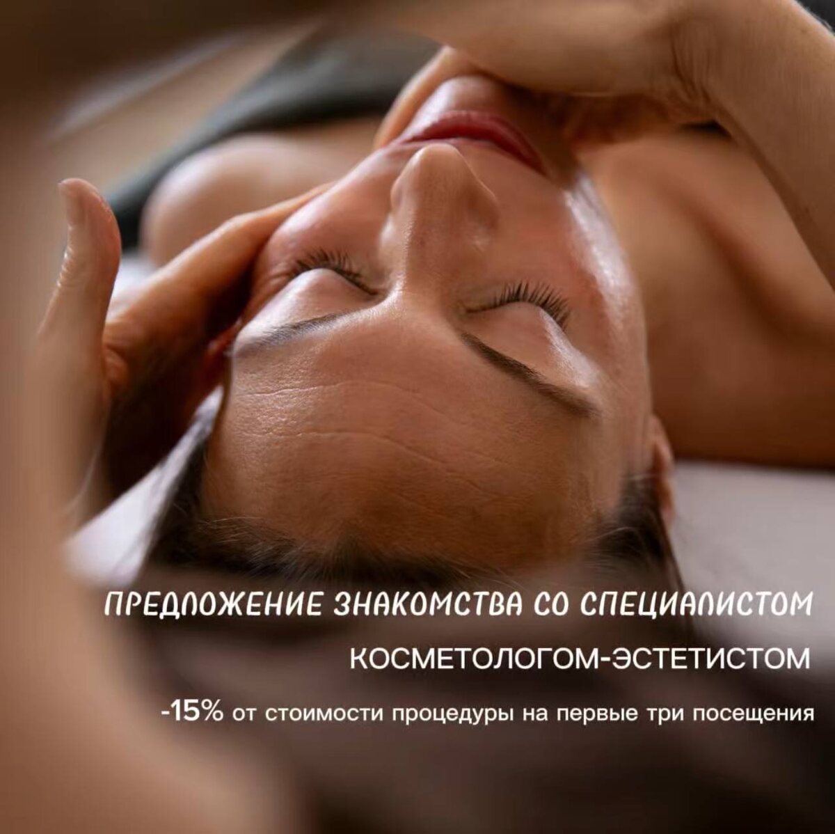Предложение знакомства со специалистом: -15% от стоимости процедуры на первые три посещения.