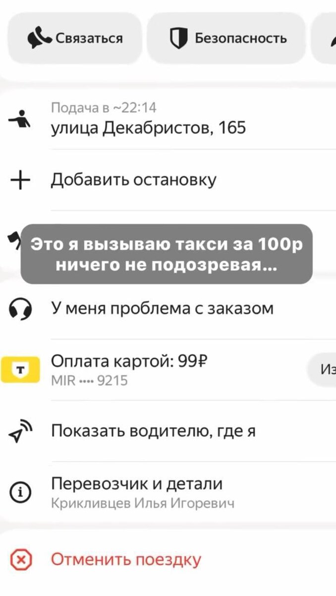 «Я на вас отзыв написал как на нищеброда»: девушка вызвала такси через приложение за 100₽, но водитель решил установить собственные цены. Несмотря на то, что заказ был подтверждён, он отказался ехать за указанную сумму и заявил, что теперь работает по своему тарифу — 800₽ за ту же поездку. ⚡️ Молния Южного Реутова