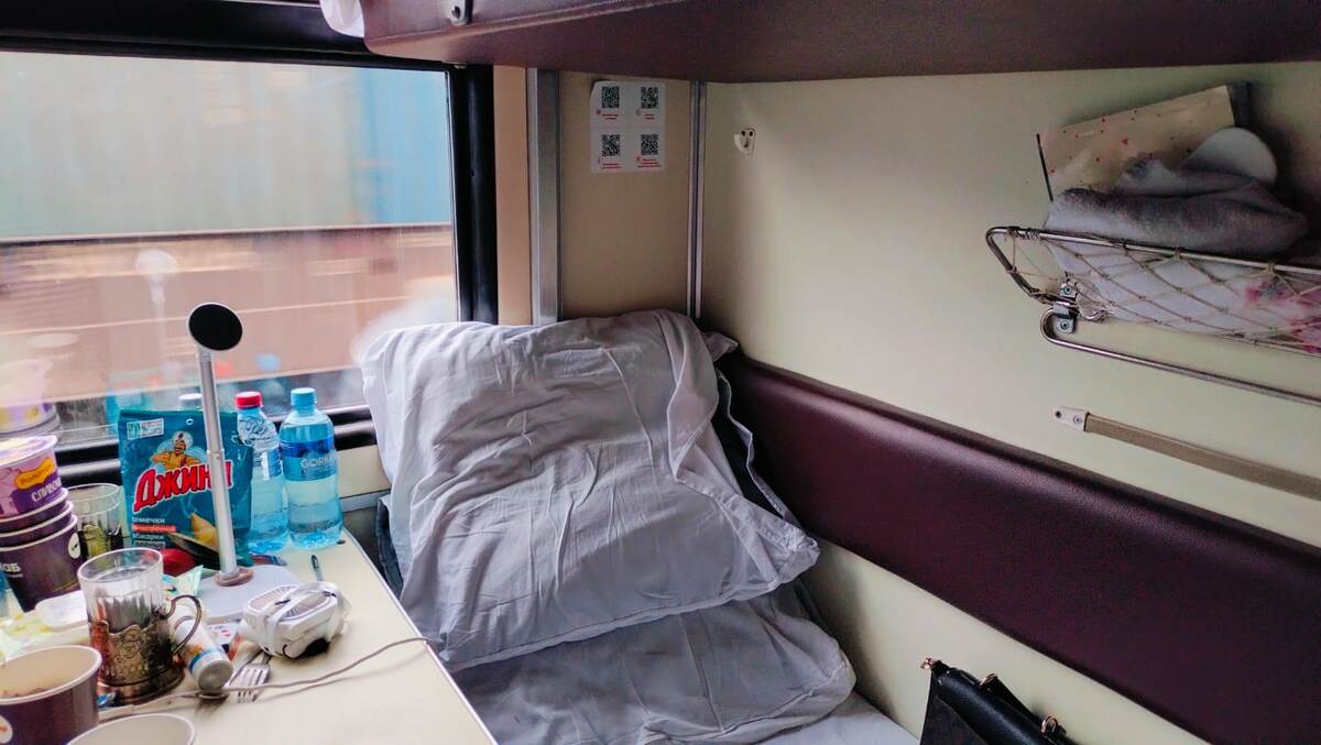 Как вы думаете почему в поездах чаще всего используется белое белье? Ответ на этот вопрос очень прост. Белое белье проще и дешевле в обслуживании. Порошки и другие средства для стирки белого белья стоят дешевле чем для цветных тканей. Но оказывается есть гост, который регламентирует материал, т.е. то из чего должна состоять ткань другими словами состав ткани - лен, хлопчатобумажная, шёлк. Для меня вообще нет разницы какого цвета белье, главное, чтобы оно было чистое и приятно пахло. Чаще всего в поездах дальнего следования выдают хлопчатобумажное белье и только один раз мне попалось постельное белье с цветами. Это была давнишняя поездка в г. Ейск.