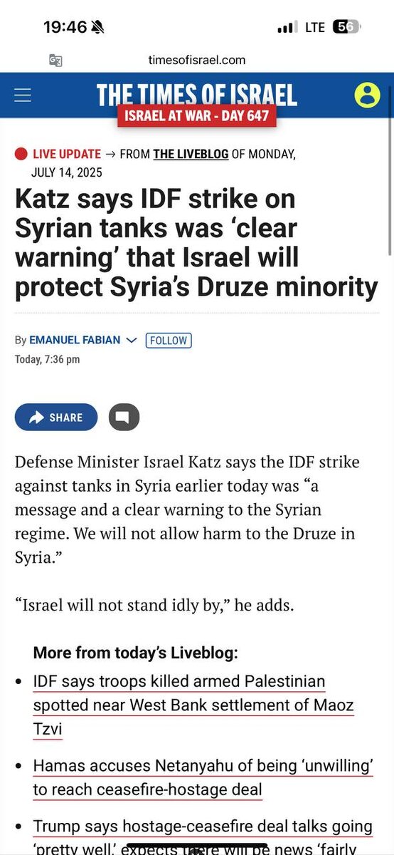 🇮🇱🇸🇾 Министр обороны Израиля Исраэль Кац заявил, что удар ЦАХАЛа по танкам в Сирии был «чётким предупреждением сирийскому режиму», что