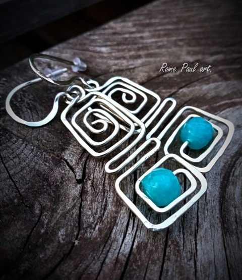 Женские серьги из кованого мельхиора в греческом стиле с натуральными индийскими аквамаринами ручной огранки. Изящные линии металла, словно застывшие в танце, обрамляют глубокую синеву камней, напоминая о лазурных водах Эгейского моря.