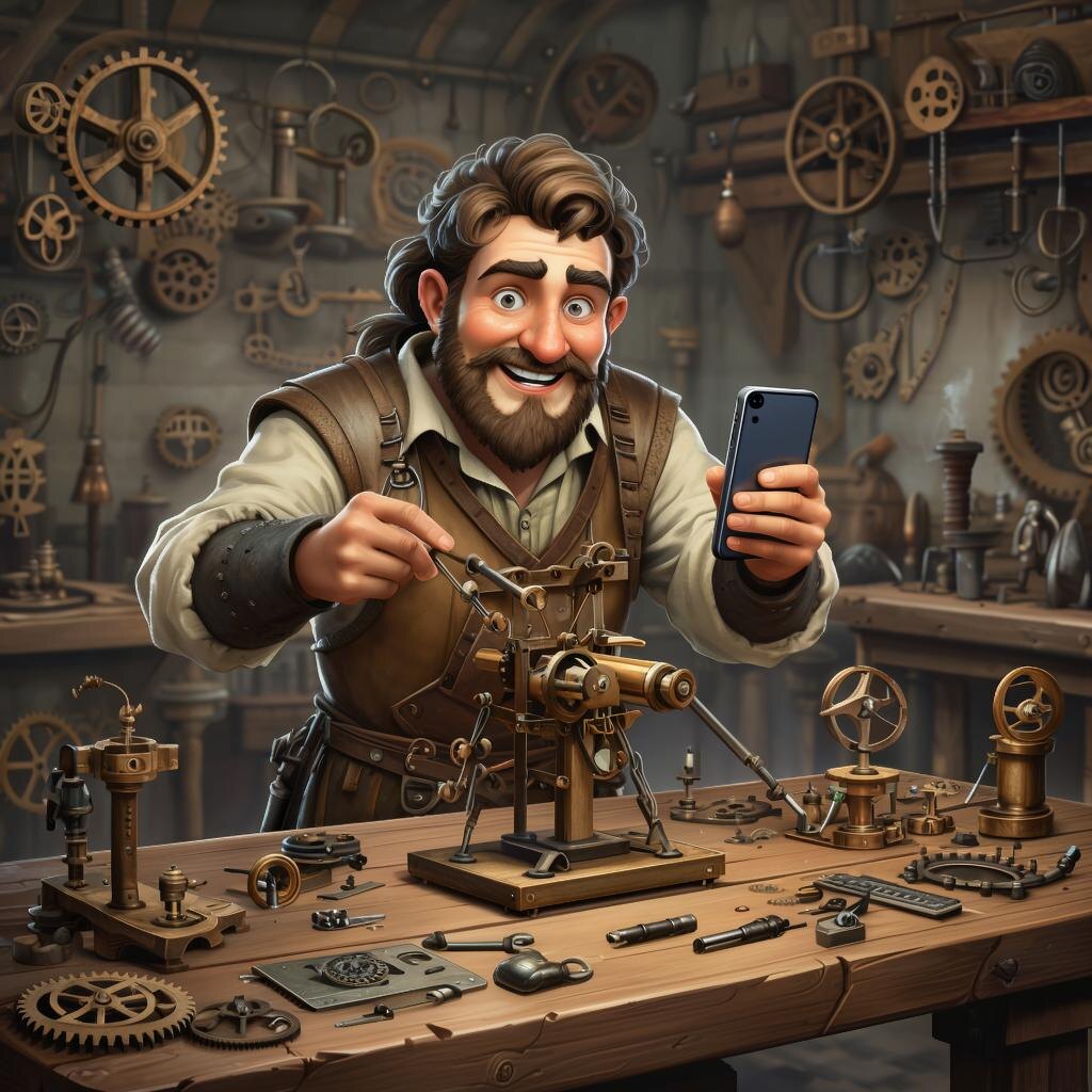 ### Привет, народ! Сегодня поговорим о том, как наши предки пытались изобрести айфон, но что-то пошло не так... ### Средневековый смартфон (версия 0.0.1) **Механические часы на цепочке** — первый смартфон, который: * Заряжался от заводной ручки (раз в день) * Имел всего одну функцию — показывать время (и то неточно) * Служил статусным аксессуаром (как айфон сейчас, только дороже) ### Печатный станок: первый принтер или машина времени? **Гутенберговский агрегат** — это когда: * Печать одной страницы занимала час * Чернила были из козьего молока * Ошибка в тексте? Переделывай всё заново! ### Средневековый навигатор: как не заблудиться в трёх кустах **Компас-недоразумение:** * Работал через раз * Указывал на ближайший кусок железа * Служил отличным подарком для крестоносцев (которые всё равно заблудились) ### Соцсети по-средневековому **Геральдические щиты** — это как Instagram, только: * Посты нельзя удалить * Лайки измеряются количеством стрел * Истории передаются устно #