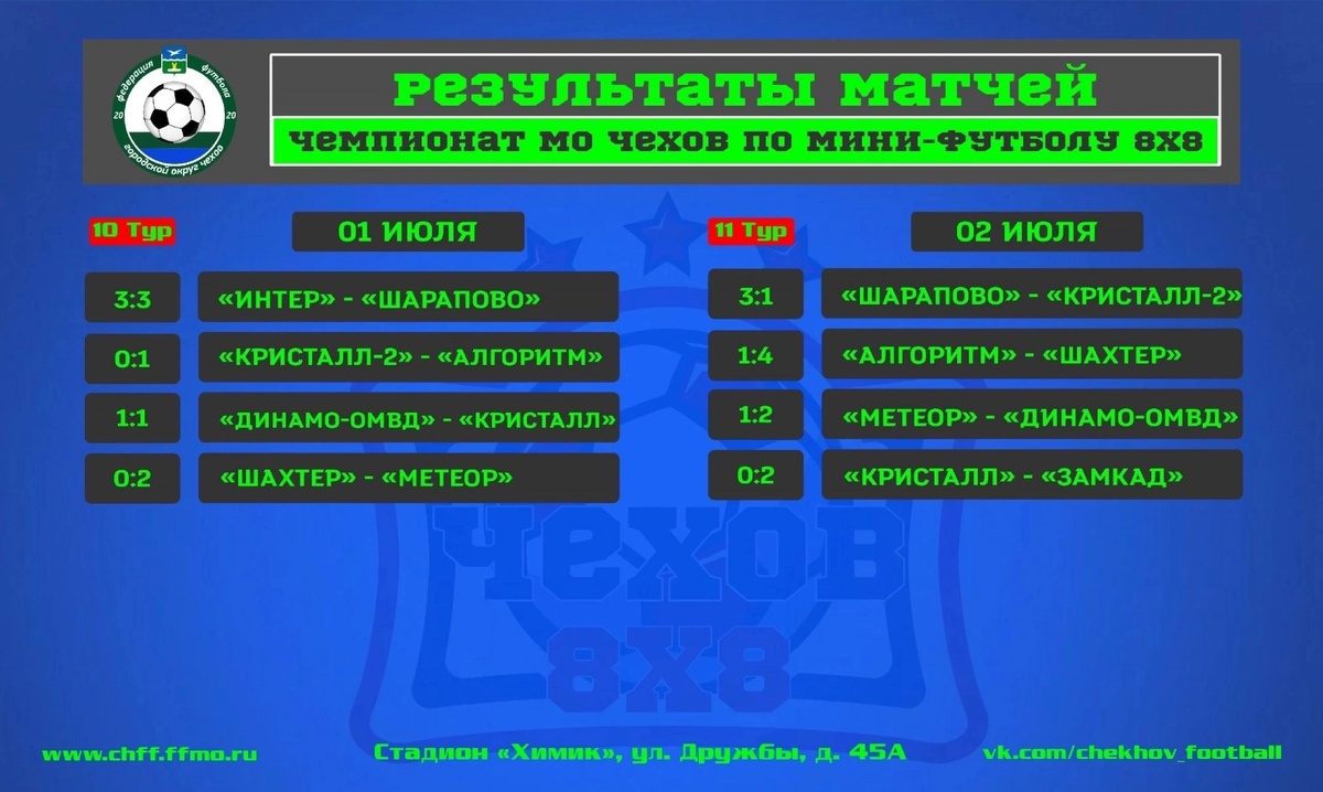 ✨ Наши новости! ИТОГИ 10 И 11 ТУРА ЧЕМПИОНАТА ПО МИНИ-ФУТБОЛУ 8х8