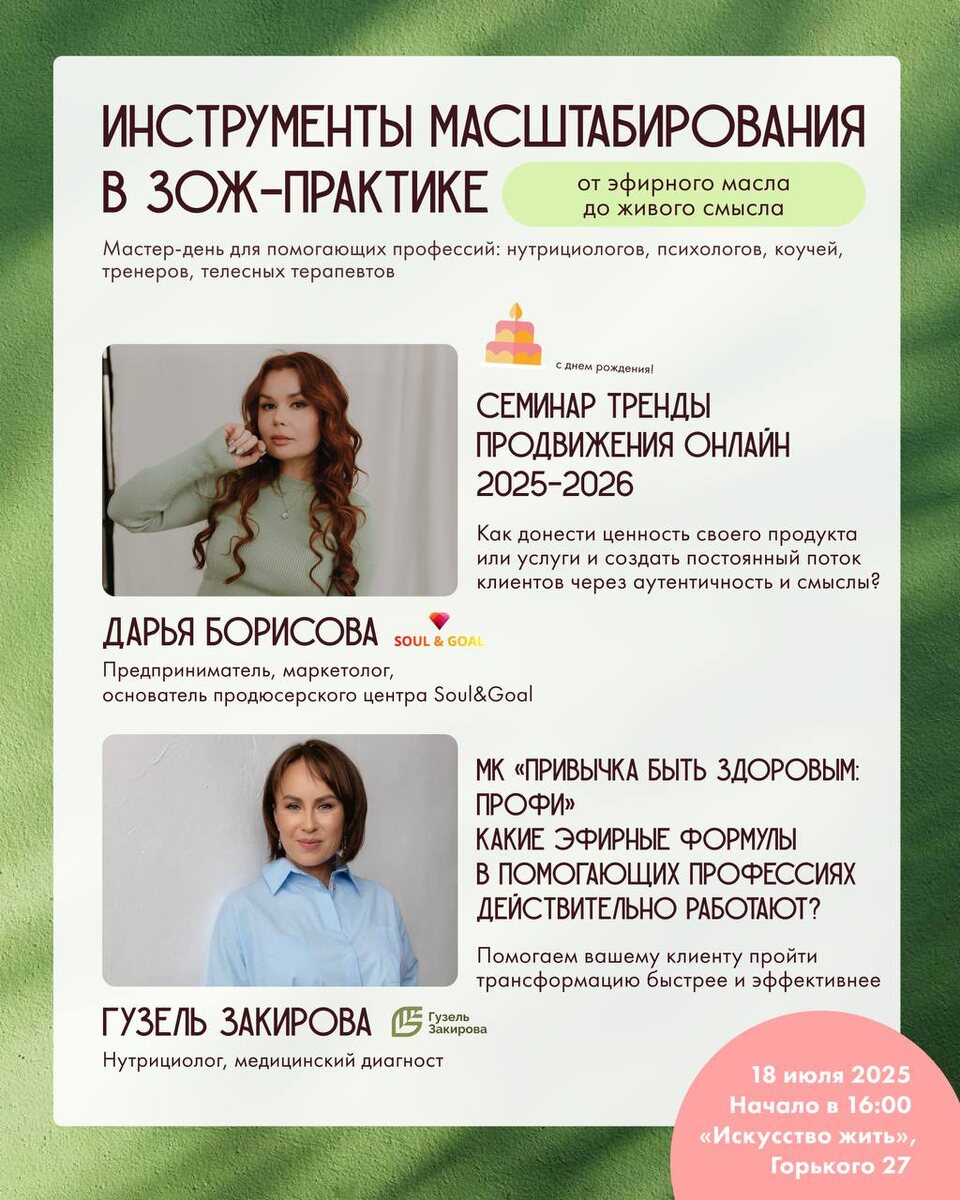 Чувствуете, что давно готовы к масштабу, но никак не получается «пробить этот потолок?» Мы с Дарьей Борисовой нашли для вас решение. Листайте карусель. И приходите на наш мастер-класс 18 июля в 16:00 ЗАПИСАТЬСЯ МОЖНО ПО ССЫЛКЕ (жмите)
