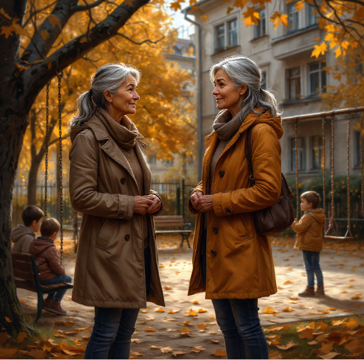 Вот и я, со своими заботами – с пакетом яблок из магазина, в тяжёлых мыслях о себе, совсем не про уют шла. Опять в зеркало утром смотрела, вздыхала: морщины глубже, талия шире, в глазах — вечная тревога. И всё не могла простить себе… да много чего: что не устроила свой быт как подруги, что не сдержалась — накричала недавно на дочь… Вот и села на лавочку к прохладному полудню, подогнула колени и уставилась на чужих детей.