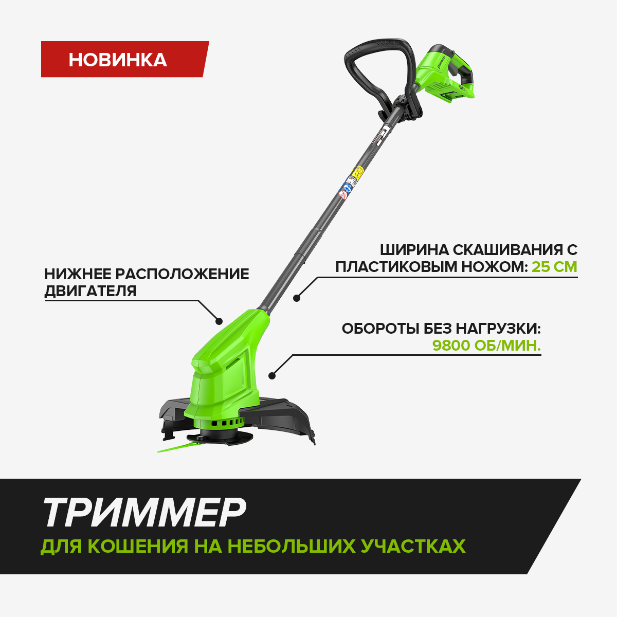 Упростите уход за садом с аккумуляторным триммером Greenworks G24LT251 (2113307SA) на 24V! 🚀 Легкий и компактный дизайн: Самая малая модель платформы POWERALL 24V весом всего 1,85 кг обеспечивает удобство и мобильность при работе на небольших участках или в труднодоступных местах. 🌿 Идеальное решение для узких и неровных пространств: Ширина скашивания 25 см и стальная штанга из 3 секций позволяют легко справляться с травой и сорняками, делая уход за газоном быстрым и приятным. 👜 Простое и комфортное использование: D-образная ручка, защитный кожух и выключатель с защитой от случайного включения обеспечивают безопасность и удобство в работе, а легкий вес облегчает длительные сеансы тримминга. 🛡️ Надежность и долговечность: Щеточный двигатель и защита от перегрузки гарантируют стабильную работу и долговечность инструмента, а совместимость с платформой Greenworks POWERALL 24 V позволяет использовать один аккумулятор на всей технике. ✨ Полностью автономное решение: Работает без проводов