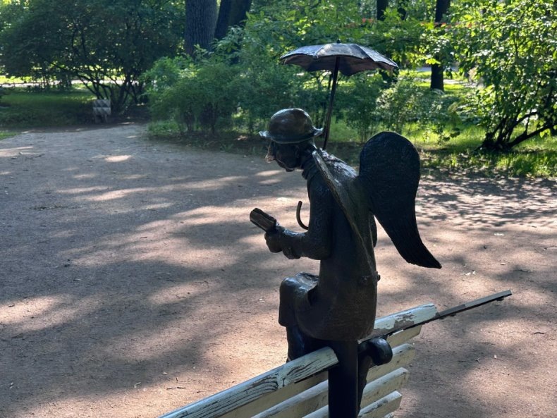 Сам Измайловский сад практически ровесник Петербурга: в 1724 году здесь была усадьба графа Александра Румянцева и при ней разбит сад. Сад и усадьба переходили от одних владельцев к другим, но неизменным было творческое начало - от Шустер-клуба в 1888году до Молодежного театра на Фонтанке в настоящее время. Скульптура "Петербургский Ангел" была установлена в 2012 году и стала одной из милых достопримечательностей Петербурга. Ангел посвящен бабушкам и дедушкам Ленинграда - Петербурга, носителям особой культуры и интеллигентности. Сейчас тут и гулять приятно - тень, зелень и цветы. И не пропустите розарий - в самом конце парка, за входом в Молодежный театр на Фонтанке - он великолепный! Я таких роз никогда не видела - кустовые и крупные!