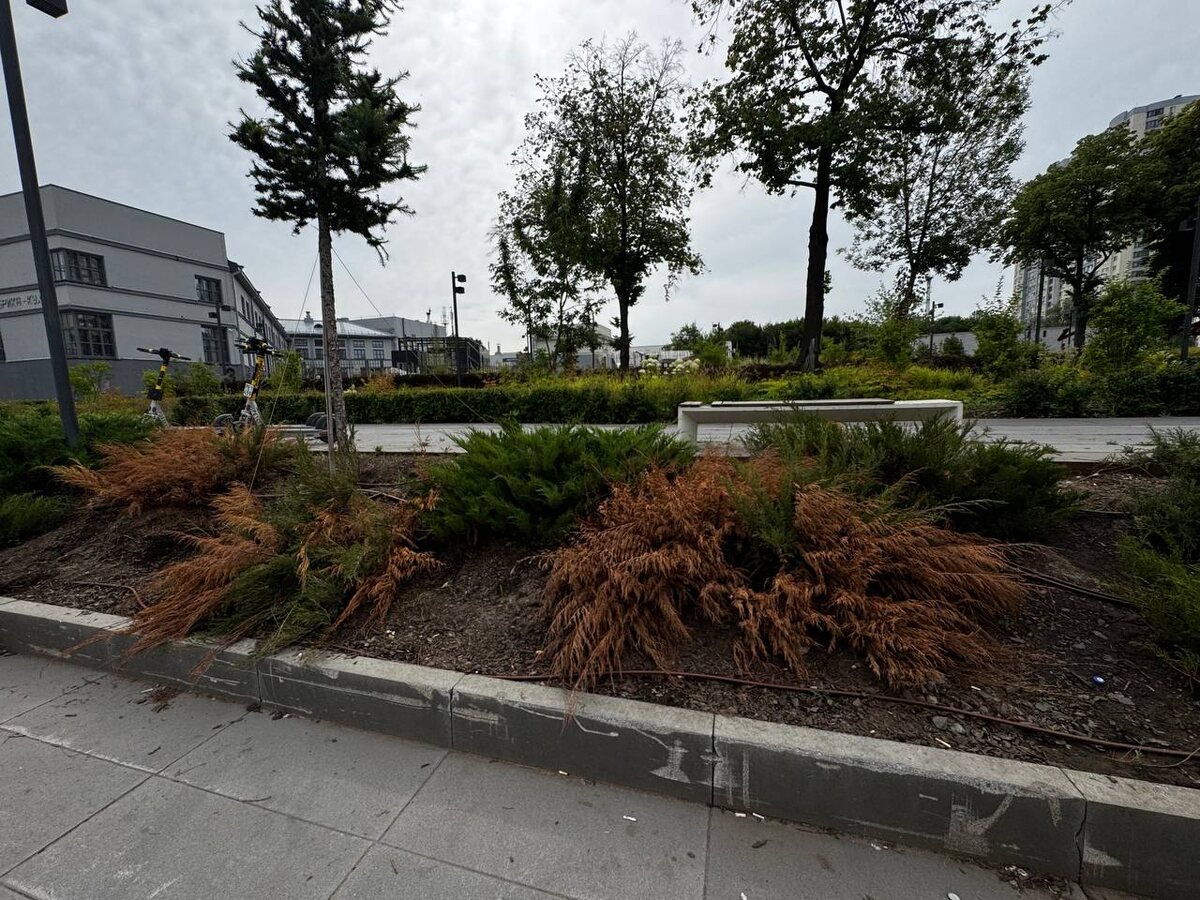 ▫️▫️▫️▫️▫️▫️▫️▫️ Самарцы обеспокоены состоянием клумб возле трамвайной остановки "Самарский филиал Третьяковской галереи" "Пожелтевшие ветви портят весь облик территории, а заодно — и вид на современное здание галереи. Парк теряет свою душу", - сообщают обеспокоенные жители, обратившиеся в редакцию tvsamara.ru. ✅ Проект ГТРК «Самара» «Жалобная книга». Свои обращения вы можете оставлять в личных сообщениях ГТРК «Самара» в социальной сети ВКонтакте и «Гостевой книге» сайта компании. 📸 ГТРК «Самара»