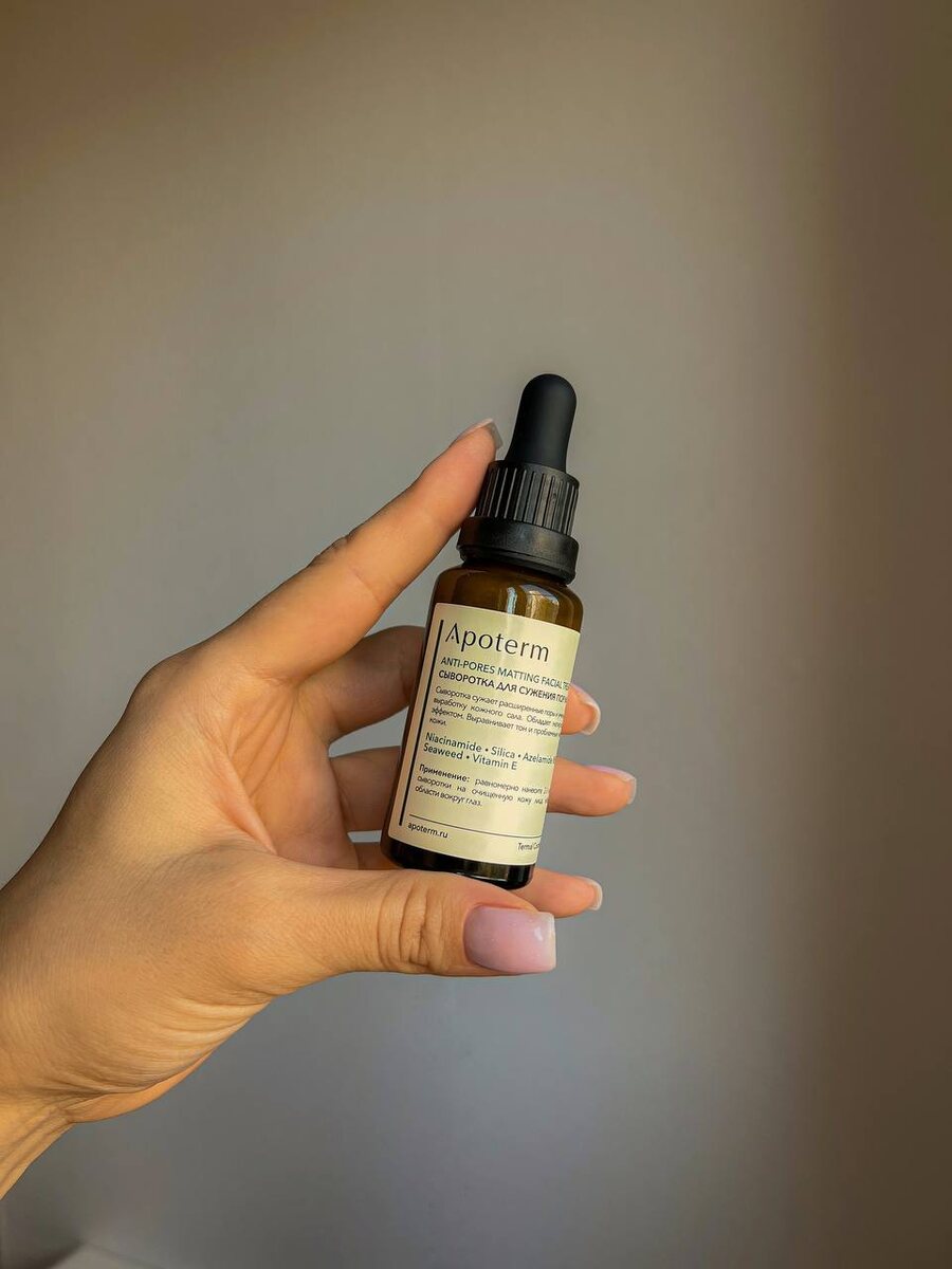 Повелась на многочисленную рекламу у блогеров этой сыворотки от Apoterm🌸 Кстати, если часто замечать в рилсах/сторис какой-либо продукт, это значит, что бренд массово закупает рекламу у блогеров (не обязательно крупных). И да, не каждая реклама может быть промаркирована, поэтому, рекомендую быть бдительными 😌 Что касается сыворотки, то не смотря на то, что с энзимной пудрой этого бренда у меня не заладилось от слова совсем (вышла аллергия), то с сывороткой все обстоит иначе💞 О эффекте говорить рано, но в целом при использовании мне она очень даже понравилась. Она действительно матирует кожу, придавая ей такую приятную бархатистость. Я использую ее с утра. Косметика ложится на нее отлично. Так же сыворотка заявляет себя в борьбе с расширенными порами, акне и осветляющим эффектом от постакне и пигментацией, но мне пока об этом говорить рано, использую ее всего неделю. #уходэмбик