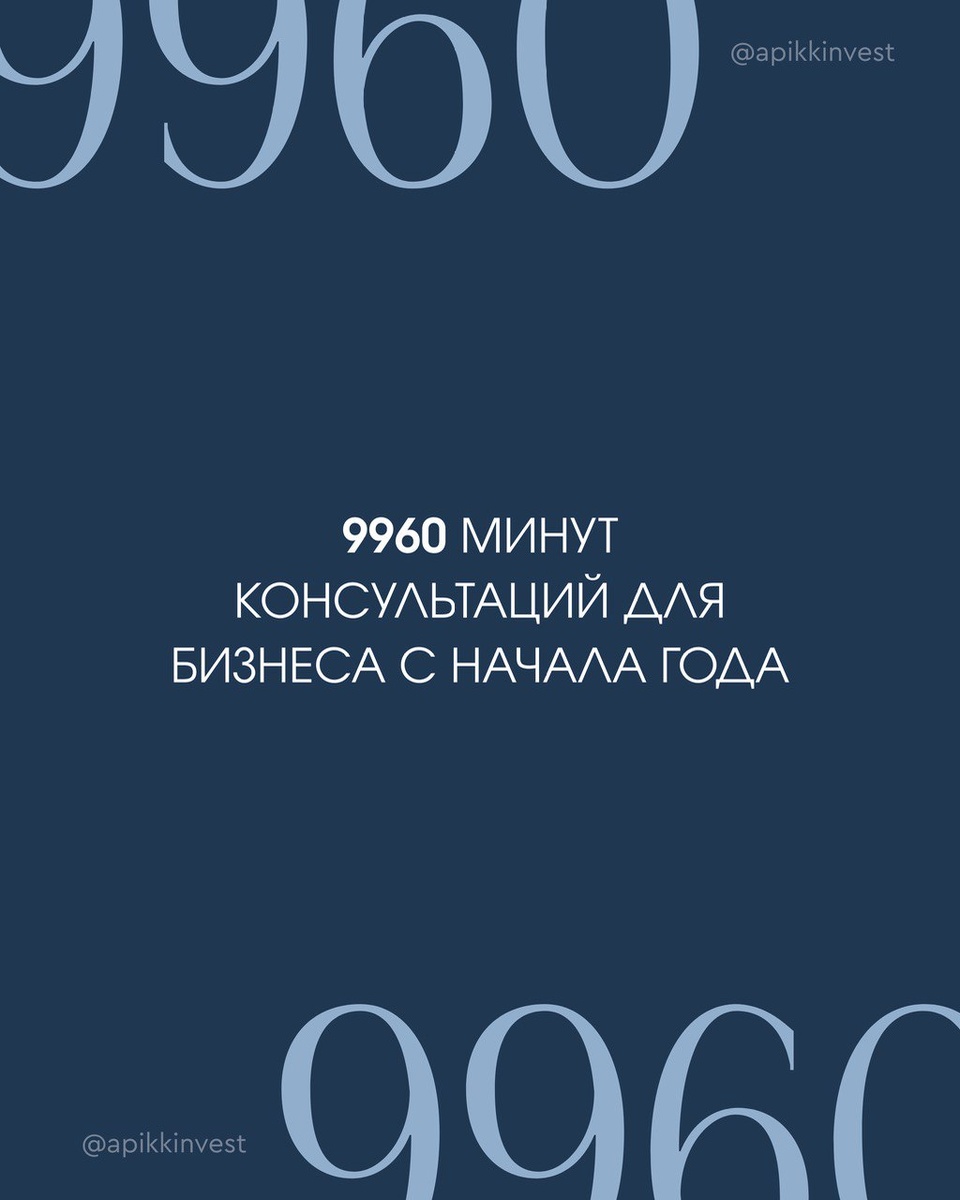 🤩 Цифра дня от АПИКК С начала года года мы провели 9 960 минут консультаций для инвесторов. Это почти 166 часов обмена знаниями, планирования и развития – и всё благодаря вашей активности и доверию. Спасибо, что выбираете АПИКК для инвестиционных решений! Если есть вопросы или хотите назначить консультацию, просто напишите в комментариях – мы всегда на связи 🤩 🤩Агентство по привлечению инвестиций Краснодарского края