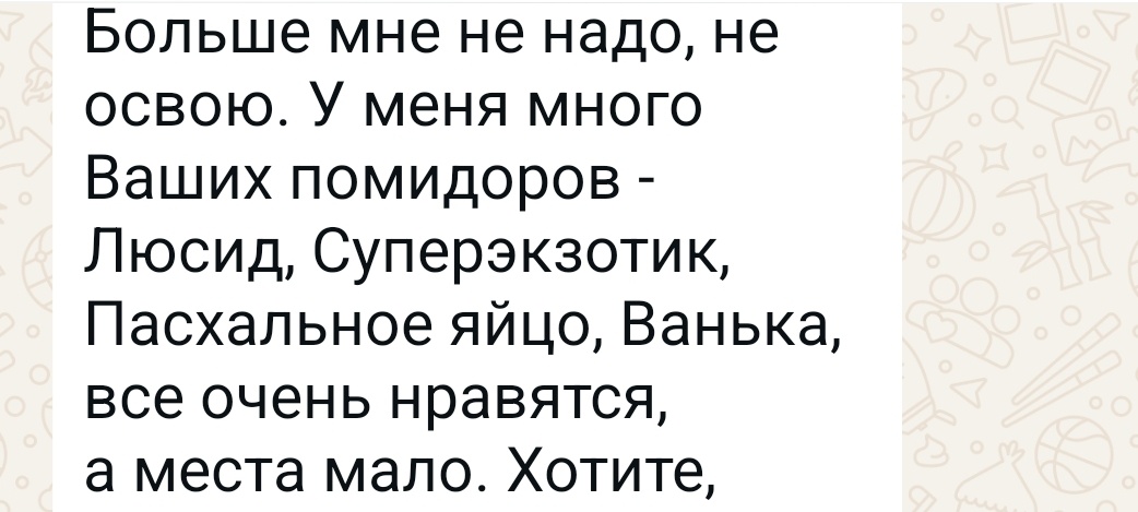 Дорогие друзья, милые мои подписчики! Спасибо, что хотите посмотреть на мои сорта. Большинство мгновенных заказов по вчерашней теме были повторно, судя по предыдущей переписке. Очень приятно читать такие слова Простите, если кому-то не ответила. Вроде всем постаралась написать и договориться. Сегодняшний день я сама себе сделала суматошным. Наверное соскучилась по цейтноту. Теперь так, по чуть-чуть. Не как раньше, привезет мама ведро, и катай до ночи. Сейчас недолго, рука набита. С закрытыми глазами и не особо выверяя пропорции. После остывания под одеялом Переставлю закатанные огурцы в холодильник. Авось 🙏 будут стоять там до сентября. У нас в подвале очень жарко. И наверное поэтому прошлогодние огурцы стояли плохо — мы вернулись в квартиру в начале августа, холодильник надо было освобождать. А вот 2-3-4 летние банки с огурцами чисты как слеза 😁 Но я здесь не об огурцах. А о прошлогодних семенах томатов и перца. Друзья, всем кому захотелось получить прошлогодние семена, всем пр