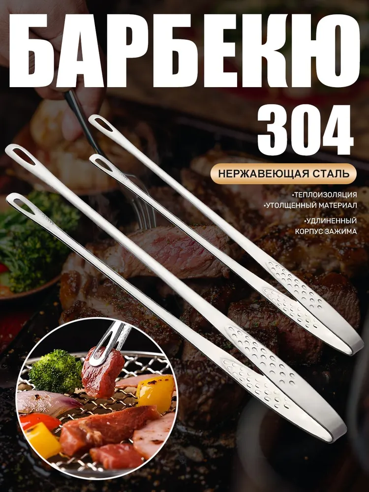 Описание: 1 Описание: Щипцы кухонныеЩипцы кухонные, набор из 3шт длиной 28 см, 23 см и 18 см - удобный кухонный предмет, который послужит для приготовления, сервировки и подачи блюд. С помощью Щипцов кулинарных вы легко перевернёте любые продукты во время жарки. Приготовите стейки, рыбу и овощи. Щипцы кухонные послужат отличным помощником для переворачивания блюд на мангале, барбекю и гриле. В отличии от силикона, щипцы кухонные из стали не повредятся от высоких температур. Так же щипцы кулинарные очень удобны в перекладывание пасты и салатов, роллов, рулетов и других продуктов. Щипцы кухонные являются украшением при сервировке стола. Стальная лопатка имеет наименьшую толщину по сравнению с другими материалами и отлично поддевает продукт с самого дна сковороды. Щипцы для гриля не позволят проникнуть лишнему маслу на вашу тарелку и избавят от брызг. Набор кухонных принадлежностей из 3 шт. защитит ваши руки от ожога во время приготовления пищи. Идеальны для кухни, дома, гриля, саджа, реш