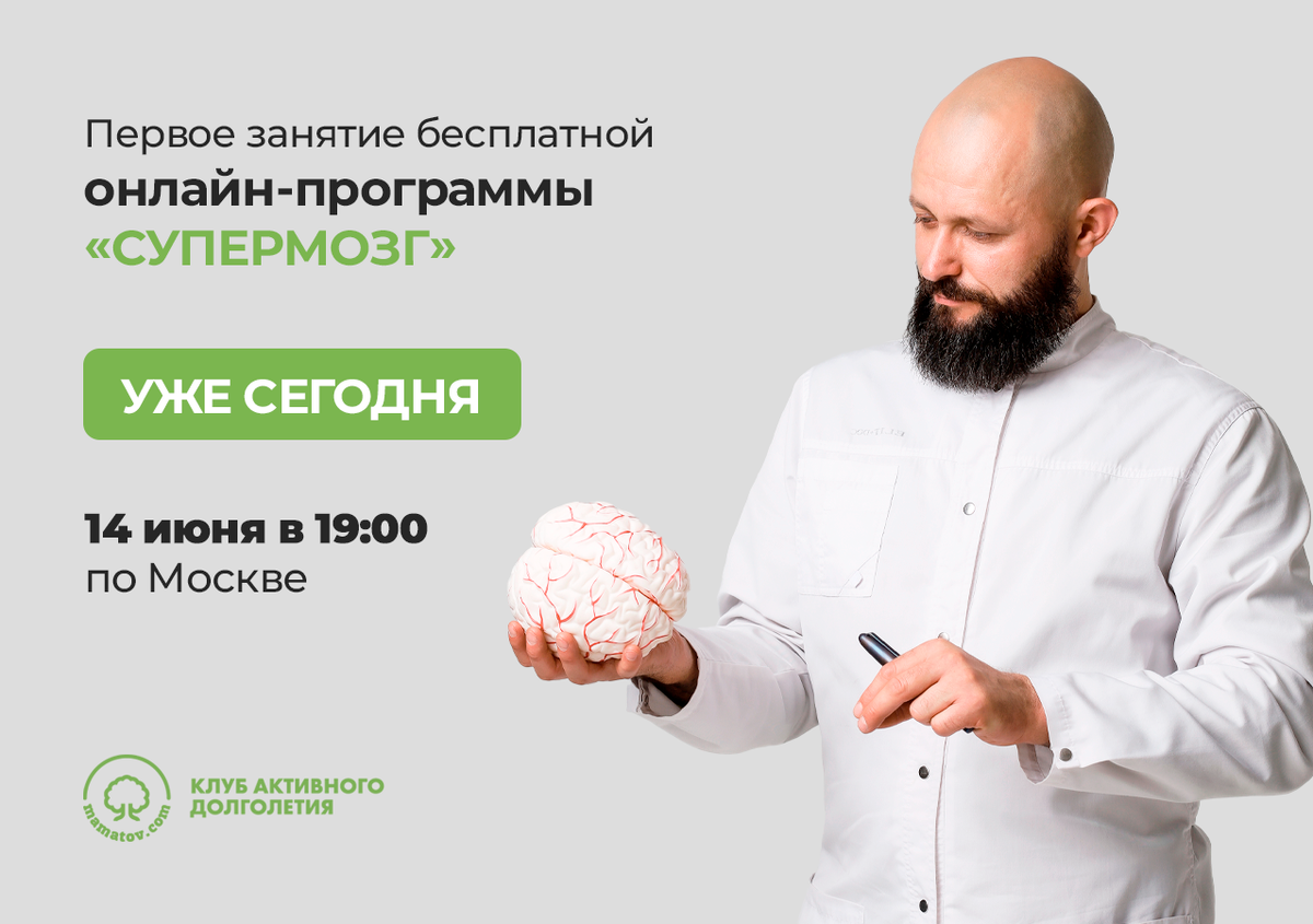 Сегодня, 14 июля в 19:00 по Москве, приглашаю Вас на закрытую онлайн-встречу, где я поделюсь работающими методами восстановления головного мозга. За годы практики я видел, как даже в сложных случаях: после инсульта, при деменции, нарушениях координации и слабости памяти — можно запустить восстановление. И сегодня мы поговорим именно об этом. Вы узнаете: