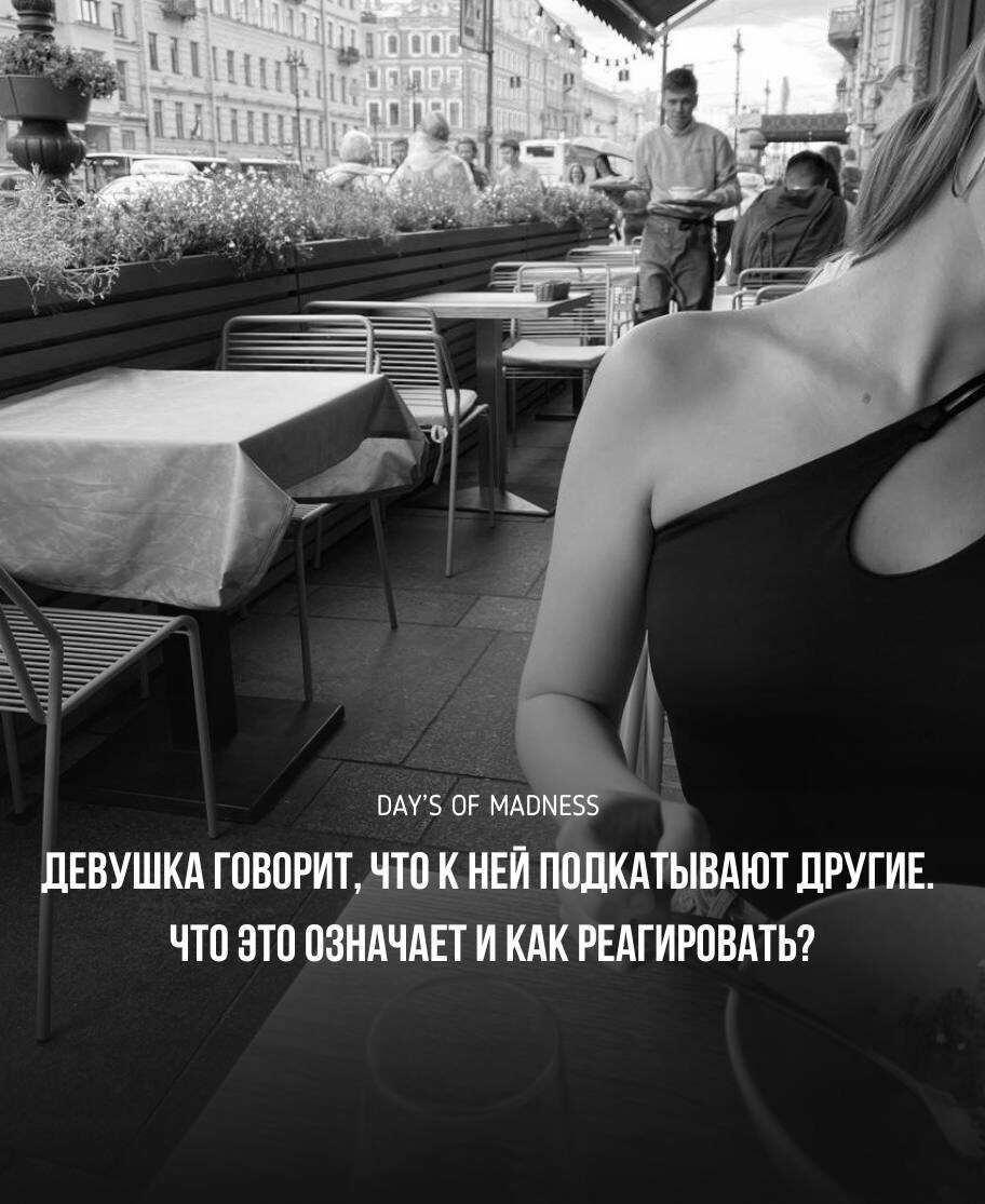 Вопрос моего сегодняшнего бойца был следующим, сейчас почти цитата: «Уже несколько раз перевел даму в горизонтальное положение. Вроде адекватная, не наглая, вкладывается в совместное времяпровождения, рассматриваю ее для чего-то более серьезного. Но вот хуйня случилась, в один из дней написала мне, что: «ко мне вот только что парень подходил познакомиться» и меня это очень сильно расстроило и разочаровало. Что это вообще за дерьмо такое? Что это означает? Это какие-то игры и дама дрянь, или можно всё же слепить с ней что-то серьезное? И если можно, то как тогда на такое правильно реагировать?».