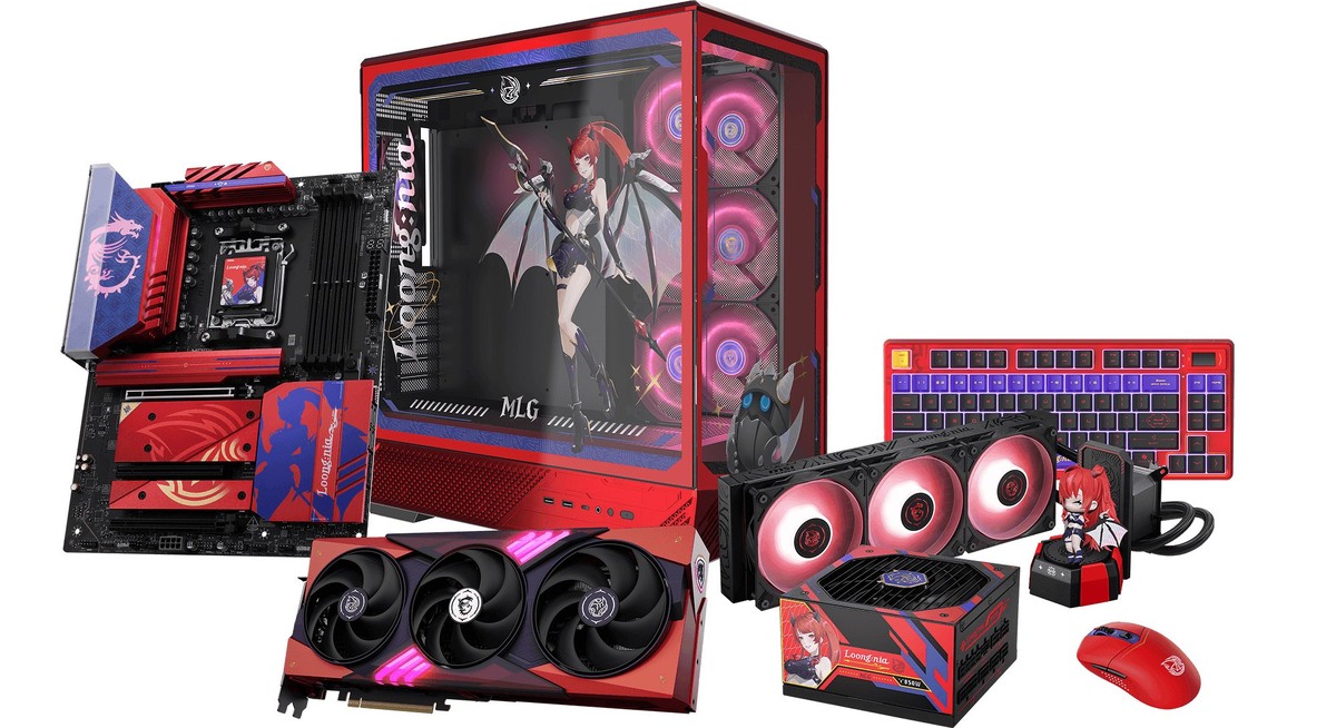 Компания MSI готовит новые модели видеокарт в линейке MLG - они были продемонстрированы на выставке Bilibili World 2025 в Китае. Линейка MLG отличается уникальным дизайном с эксклюзивными персонажами. По информации авторов ресурса, MLG расшифровывается как Mo‑Loong‑Gi — это имя выдуманного персонажа, маскота серии, «Крылатого Наблюдателя», как её называет MSI — воспитанницы и защитницы благородного рода Древних Драконов. Комплектующие в красно-синей расцветке. Источник изображения: MSI Хотя в VideoCardz акцентируют внимание на видеокартах, на самом деле MSI представила на выставке обширный ассортимент компьютерных комплектующих и периферии с оформлением в рассматриваемой тематике. На момент написания появилась специальная страница на сайте MSI, где пока кратко можно ознакомиться с некоторыми новинками: компьютерный корпус, материнская плата, система жидкостного охлаждения (СЖО) для процессора, блок питания, видеокарта, компьютерная мышь и клавиатура, — всё в красно-синей расцветке. Одн