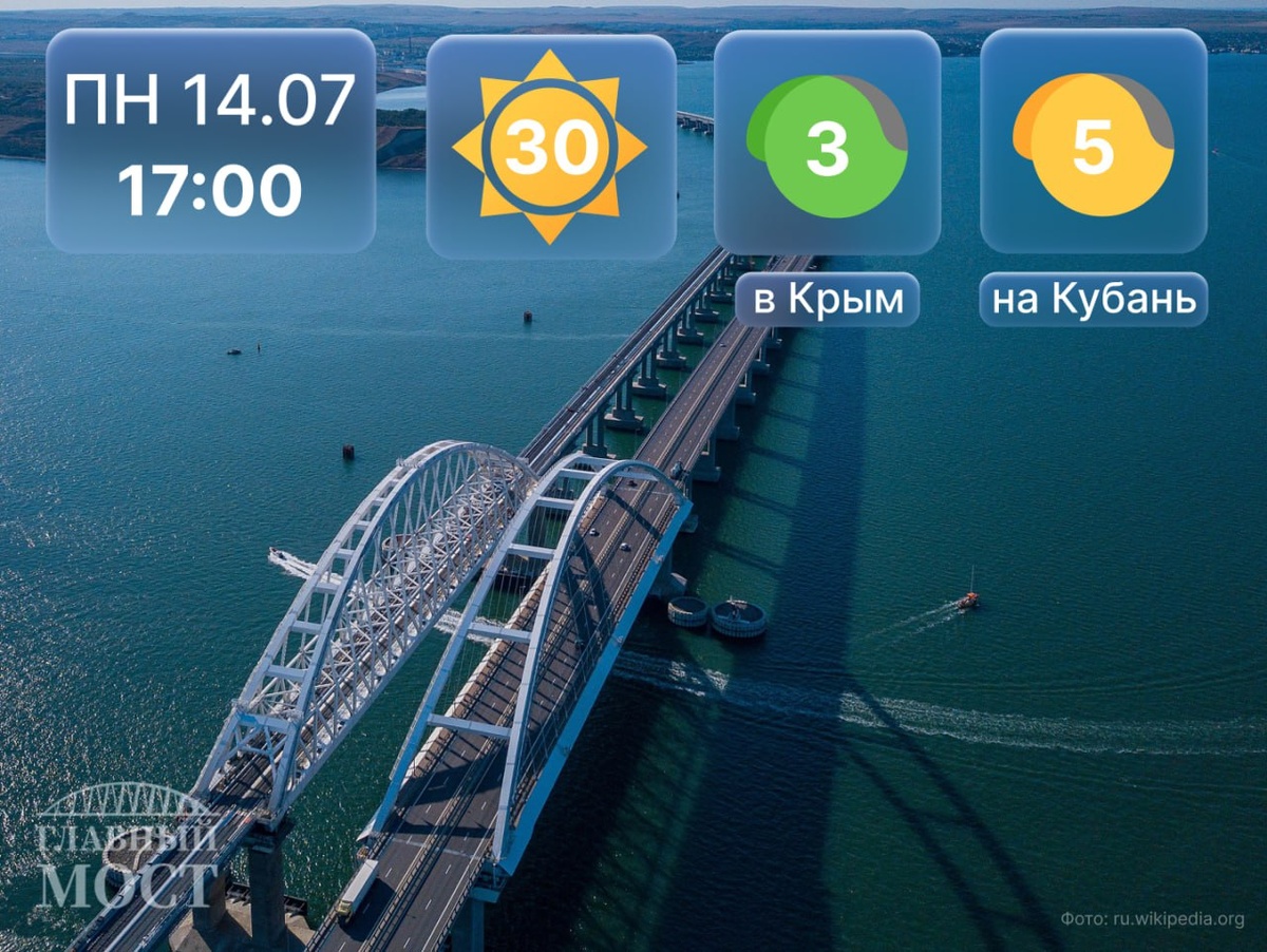 Уже быстрее... 🔹В очереди со стороны Краснодарского края находятся 105 авто — время ожидания около 30 минут. 🔹В очереди со стороны Крыма находятся 530 транспортных средств — время ожидания около 2-х часов. Всегда на связи 👇 @glav_most_adm Главный мост | Подписаться