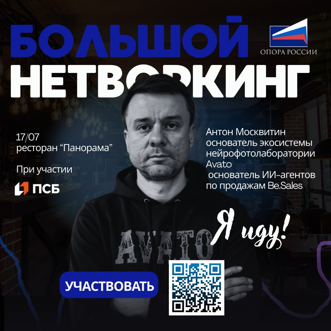Я выступаю! 🎤 17 июля делюсь опытом на Бизнес-завтраке в Пскове — встрече предпринимателей, маркетологов и тех, кто хочет применять ИИ с умом и выгодой. 📌 Моя тема: Как мы сэкономили 3 млн руб в год на отделе продаж с помощью ИИ-агента 🧠 Расскажу, как с помощью ИИ-агента для квалификации клиентов мы: – снизили нагрузку на команду – ускорили цикл продаж – и экономим более 300 тыс. руб в месяц на ФОТ. Формат — блиц-спич на 5 минут. Только конкретика и цифры. 🔗 Подробнее о завтраке и регистрация: https://t.me/Opora60EventsBot Организатор: Молодёжный комитет ПРО «Опора России» при участии ПАО "Банк ПСБ"