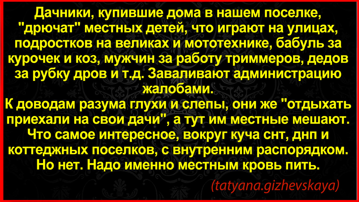 А я не люблю когда дети голосят летом во дворе. Мои окна выходят на дорогу и машины мне не мешают. Но когда возвращаюсь домой через двор, то всегда удивляюсь как соседи не сошли с ума от стука мяча, скрипа качелей и визгов-писков. И еще беготни по подъезду туда-сюда. Очень раздражает. Купила дом и переехала, наслаждаюсь пением соседского петуха . Когда дочка маленькая была не помню чтобы так уставала от чужих детей, а после 50 лет поняла, что терпеть это больше не хочу. (Алевтина Журбова)