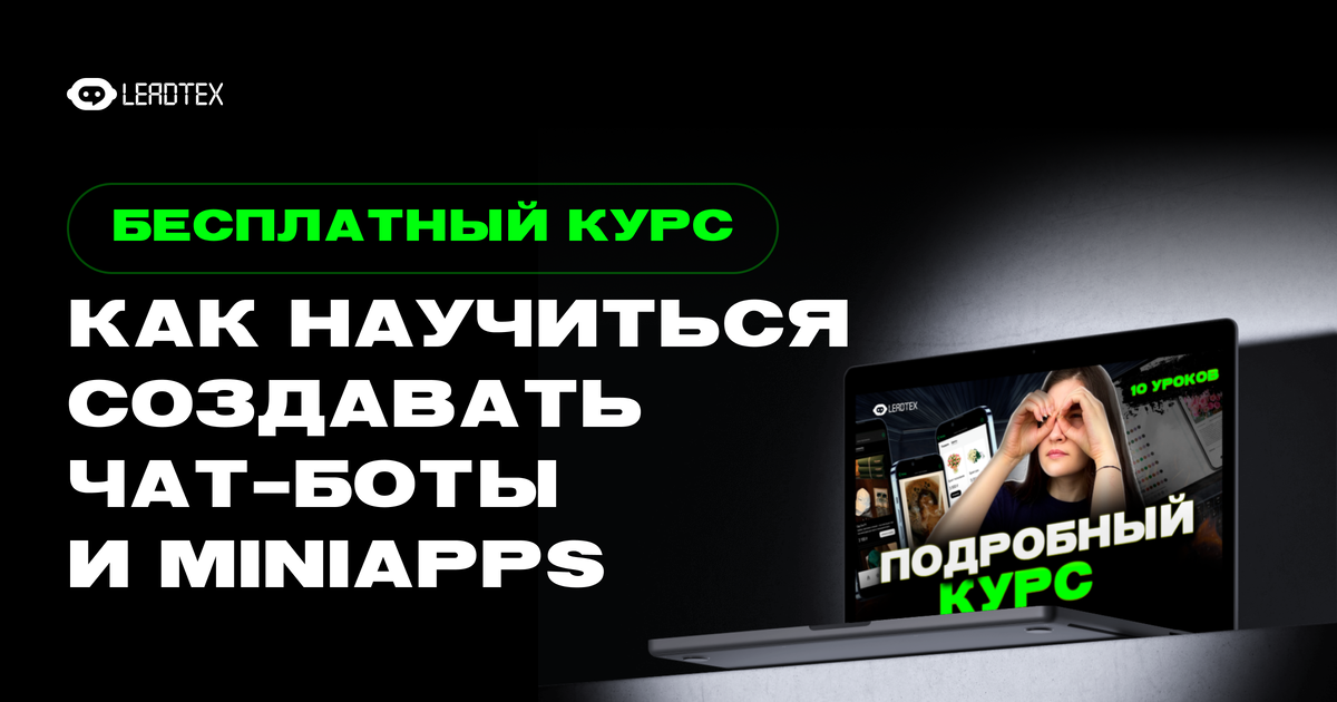 Мы создали бесплатный курс по созданию чат-ботов и MiniApps на LEADTEX— с фокусом на практику. Это 10 коротких уроков, где ты шаг за шагом создашь: