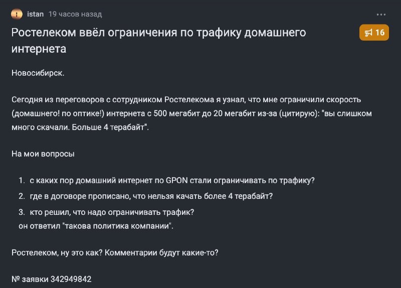 ⚡️ИНТЕРНЕТ ТОРМОЗИТ? ВИНОВАТ РОСТЕЛЕКОМ! Если ты качаешь много фильмов, игр и данных, то мог заметить: скорость упала. Всё дело в скрытом лимите от провайдера. 🤨 Секрет раскрыт: если за месяц ты «съел» больше 1 ТБ трафика, Ростелеком может урезать скорость. Это прописано в договоре, просто мало кто читал мелкий шрифт. Абоненты уже бьют тревогу. Хочешь узнать, как обойти ограничения? 💎 Подробности — в Castalia. Что думаешь? Пиши в комменты! #интернет | ВСЁ ПРО AI | AI NEWS | Дзен | ОК