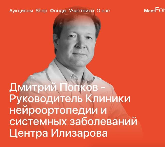Легендарный детский хирург из Кургана Дмитрий Арнольдович Попков поддерживает наш фонд. Благотворительный аукцион Meet For Charity – это площадка, где в качестве лота предлагается встреча с известным человеком, участники «борются» за кандидата, а побеждает тот, кто сделал максимальную ставку. Все вырученные средства направляются в фонд, в пользу которого участвовал этот человек. Аукцион с Дмитрием Попковым здесь goo.su/R8enl