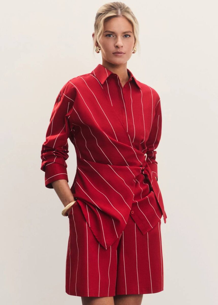 Потрясающие красивые костюмы рубашка на запах и шорты бермуды в тонкую полоску в Zarina Свинка делится с вами находкой в двух цветах Красная рубашка и шорты Бежевая рубашка и шорты