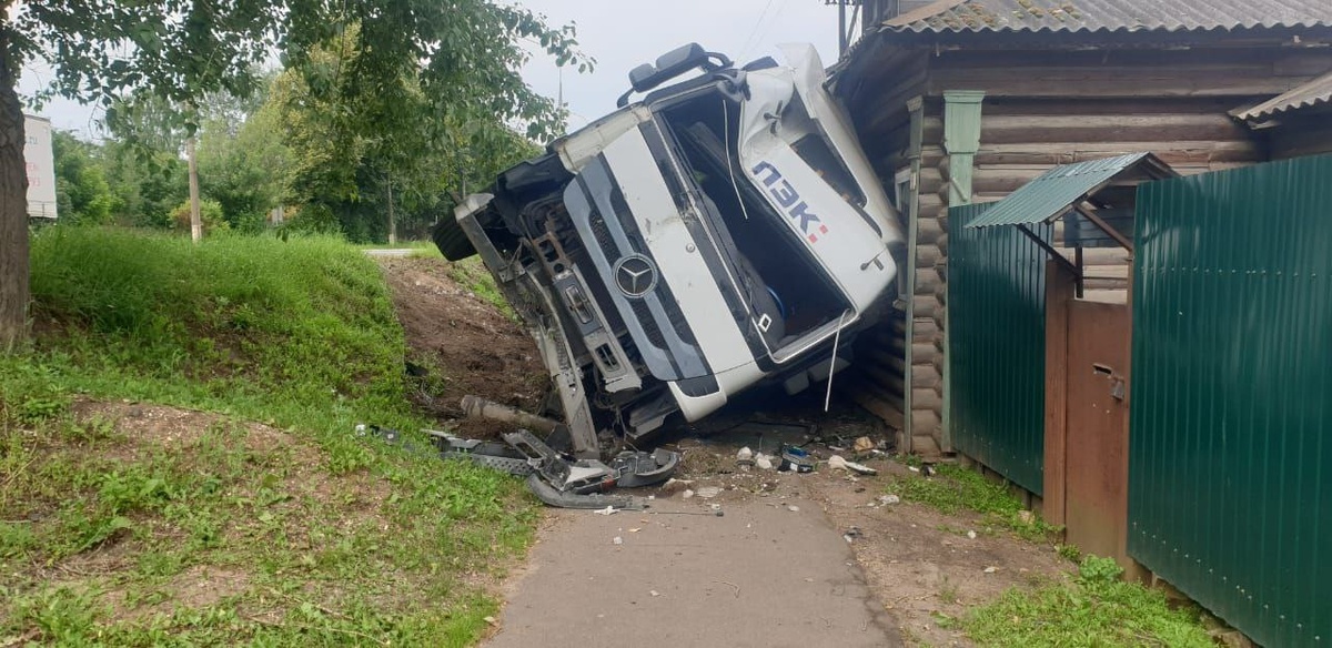 Работа сделана ! Водителю автопоезда стало плохо, потерял управление и съехал с дороги на встречную обочину, сбил столб и опрокинулся на жилой дом. Водителя доставили в больницу, в доме никто не пострадал. Работу сделали по нестандартной схеме без перекрытия движения 😎😎